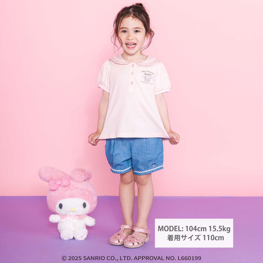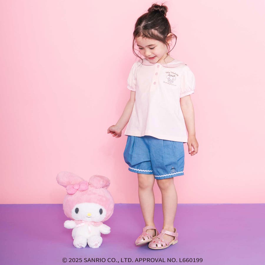 【マイメロディ&クロミ×SLAPSLIP】耳付きセーラー襟パフスリーブポロシャツ…