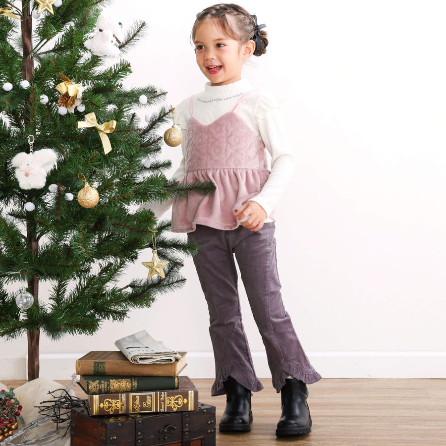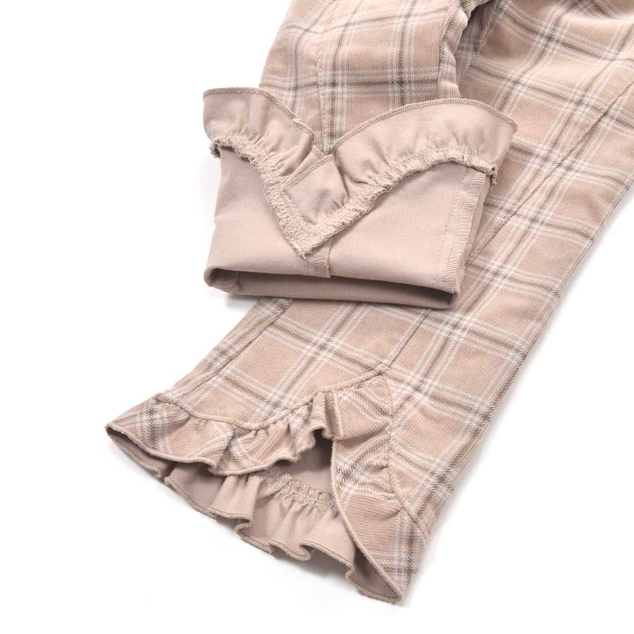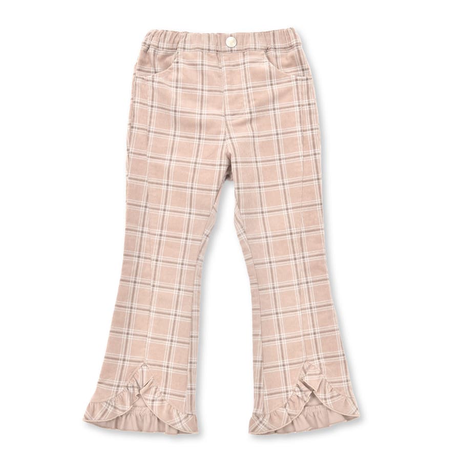【お揃い】フリルヘムコールテンチェックフレアパンツ(80~140cm)