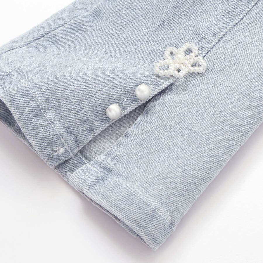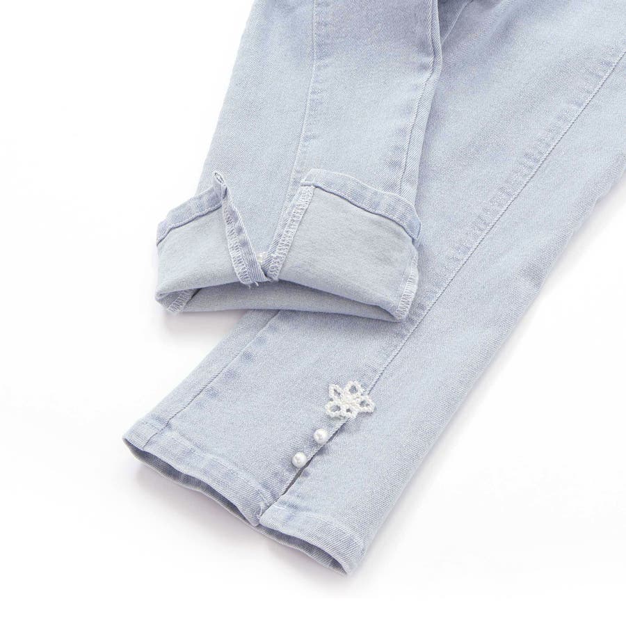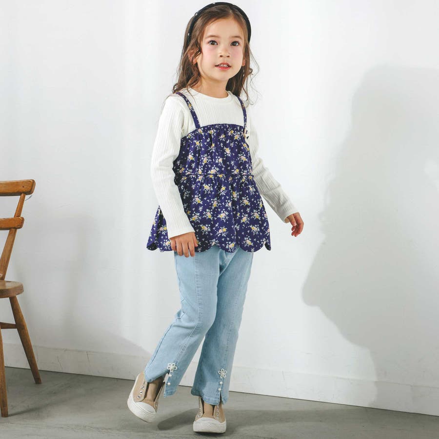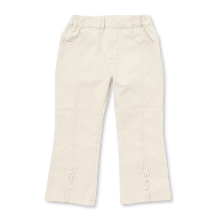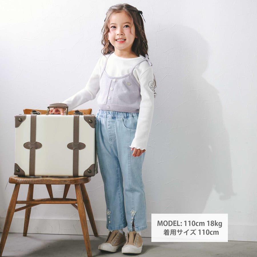 裾スリットパール花付きツイルデニムパンツ(90~130cm)