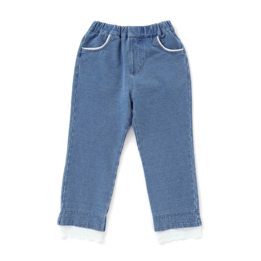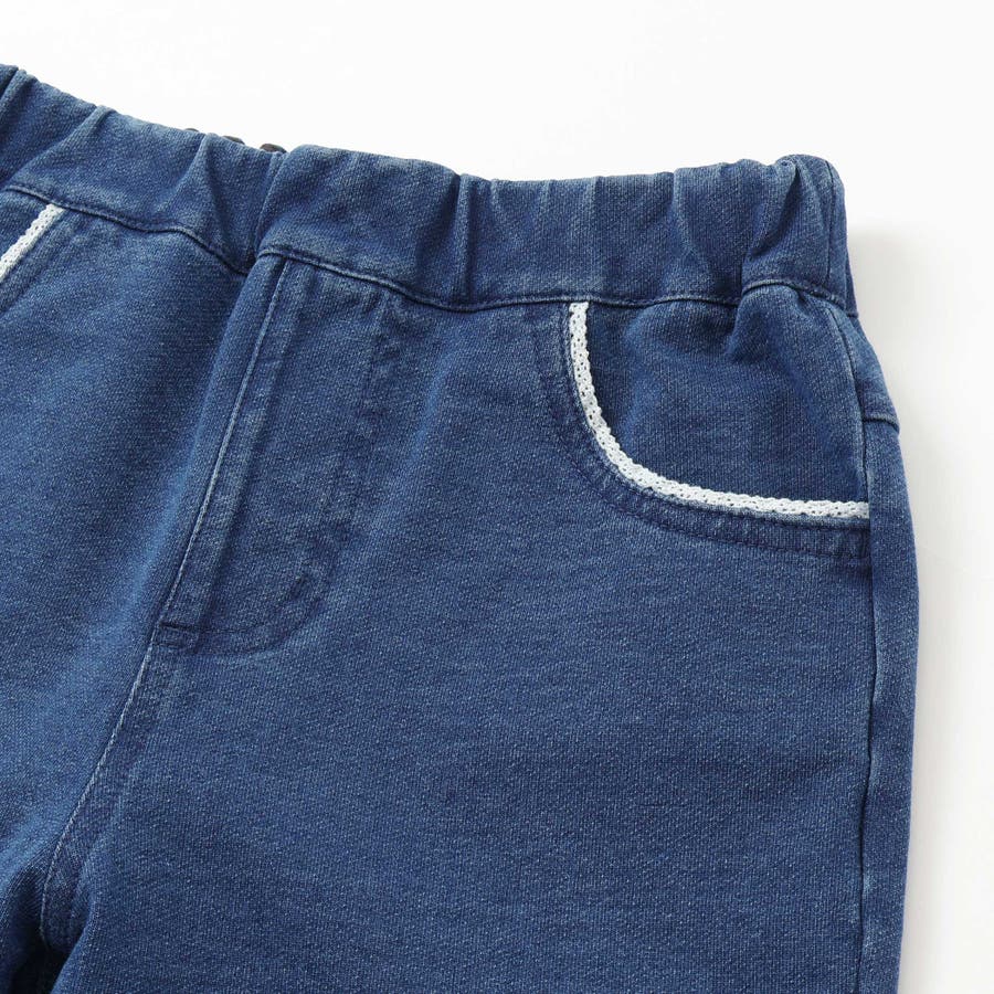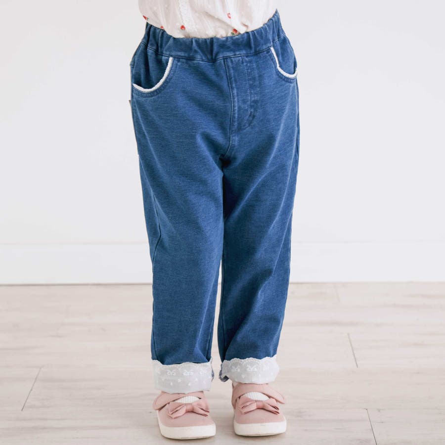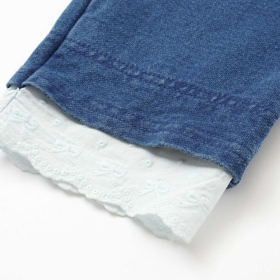 腰ポケットや裾にはレースをほどこしてカジュアルアイテムなデニムをキュートにスタイルチェンジ!