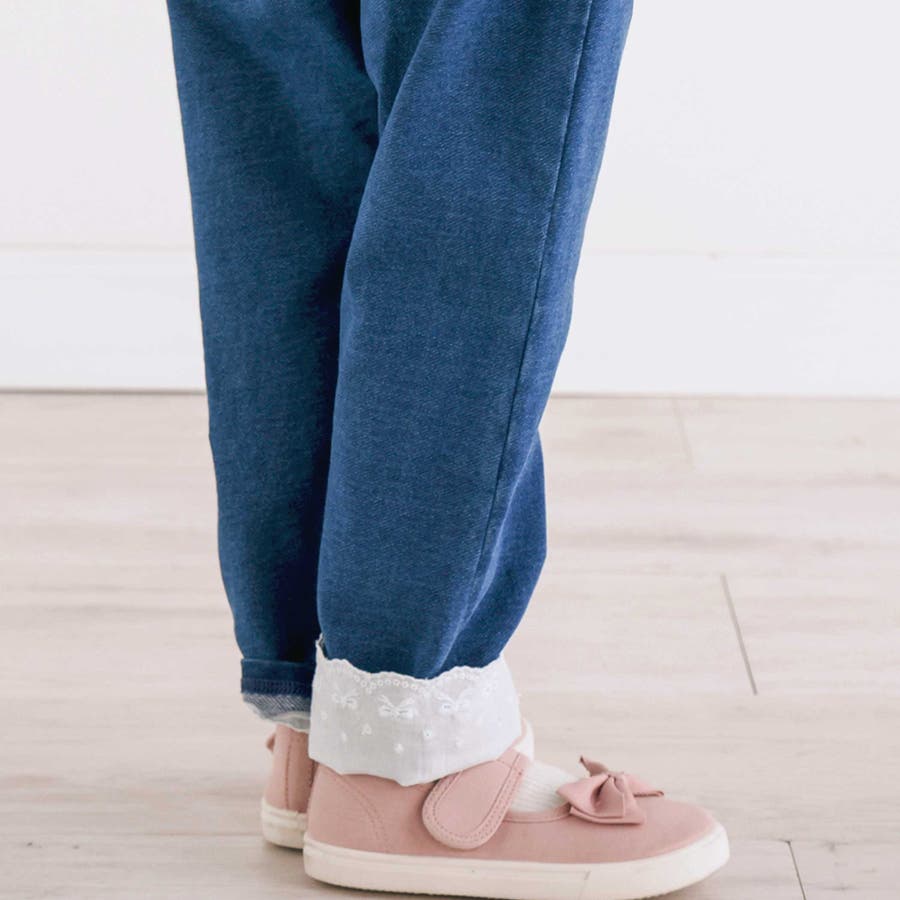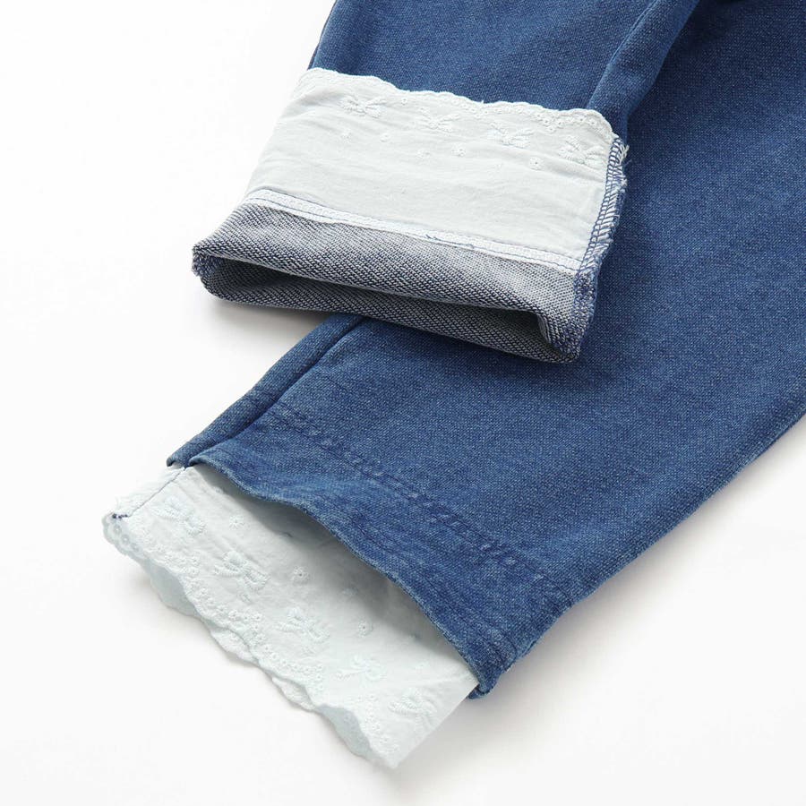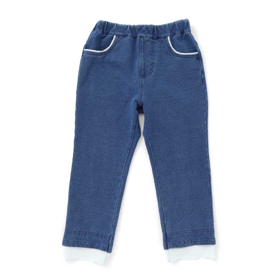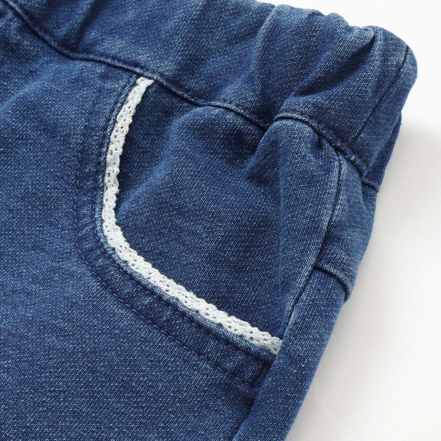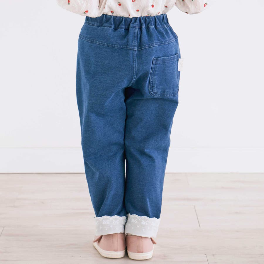 腰ポケットや裾にはレースをほどこしてカジュアルアイテムなデニムをキュートにスタイルチェンジ!