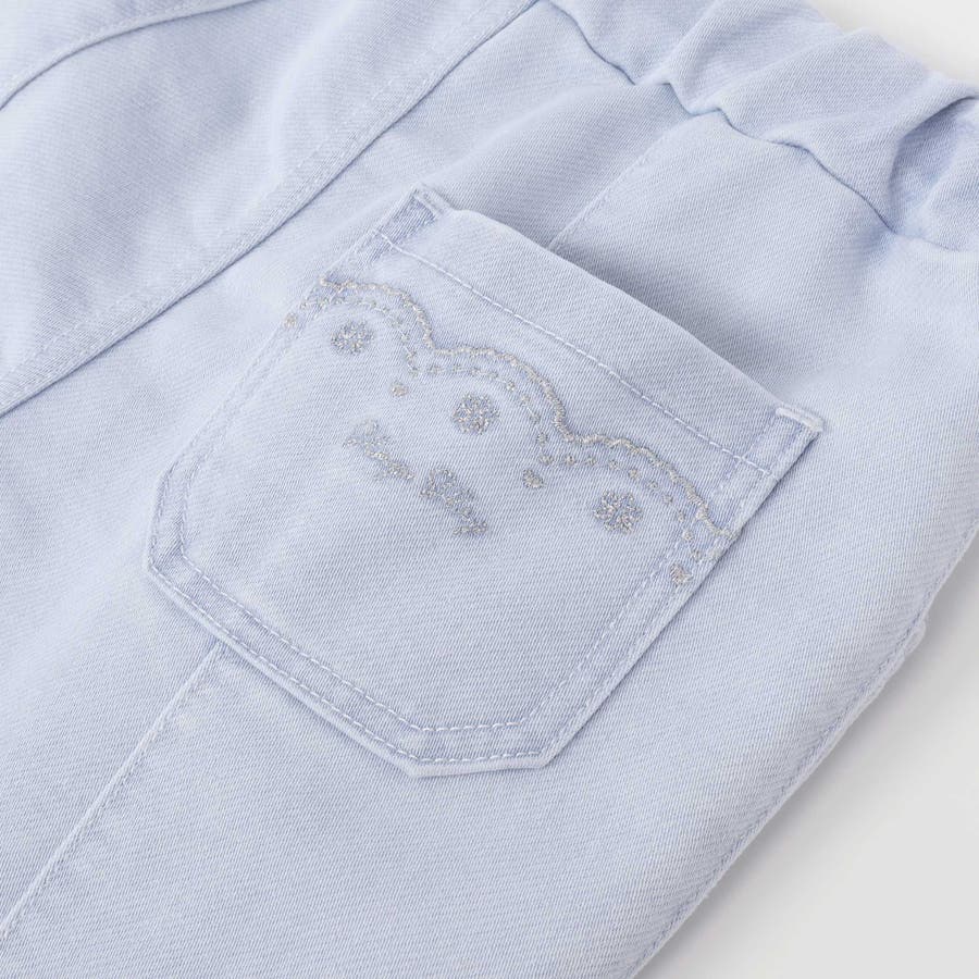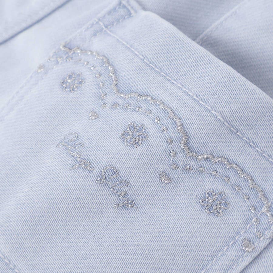 後ろのポケットにはさりげなくきらめくラメ糸で刺しゅうをほどこし、細かいところまで可愛いにこだわったデザインになっています。