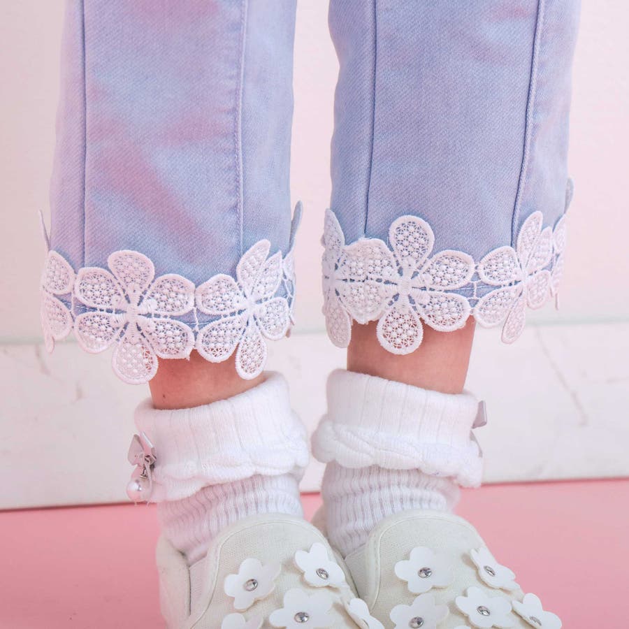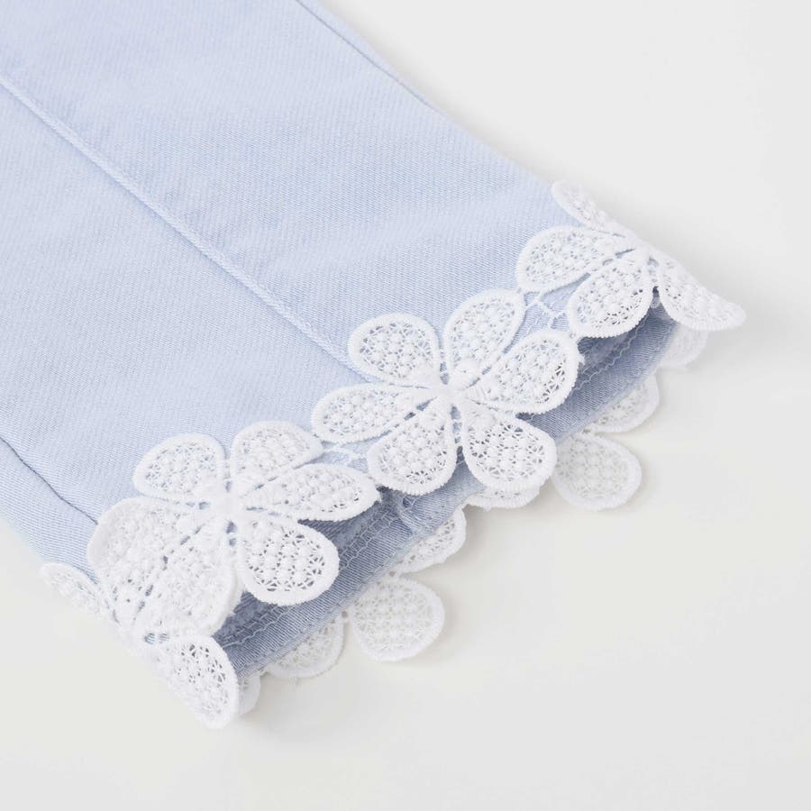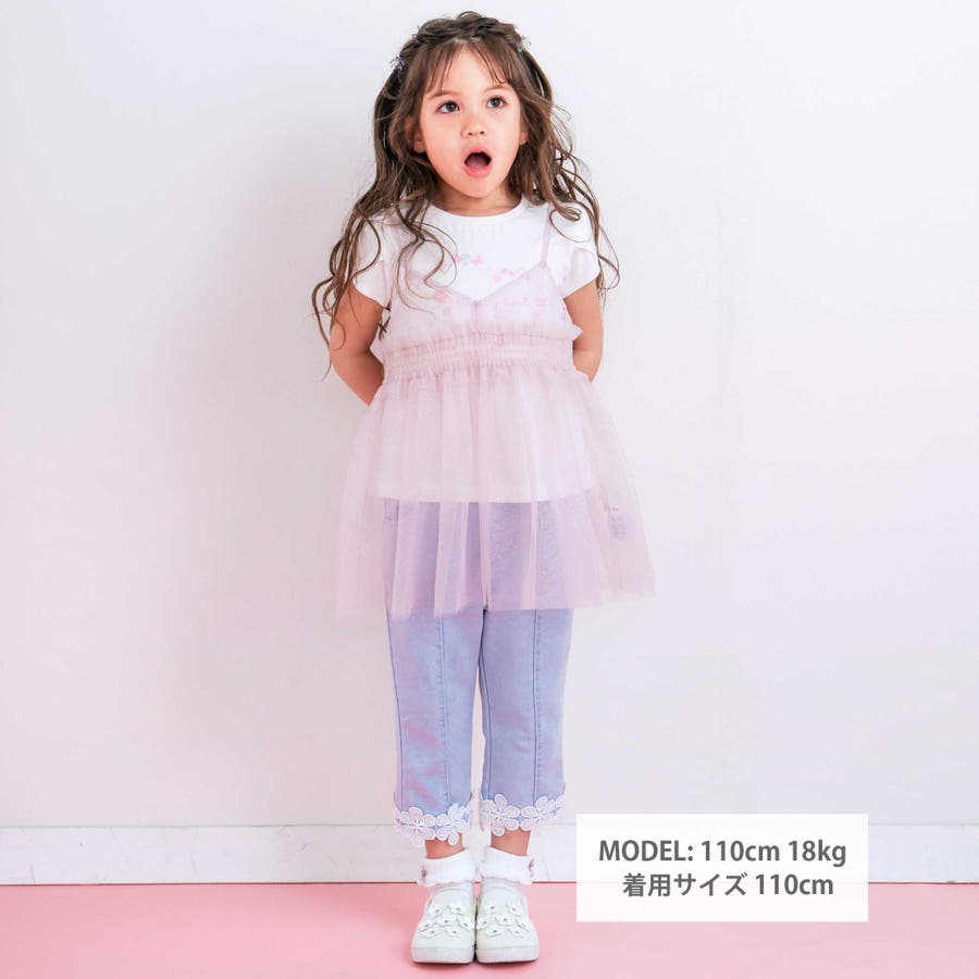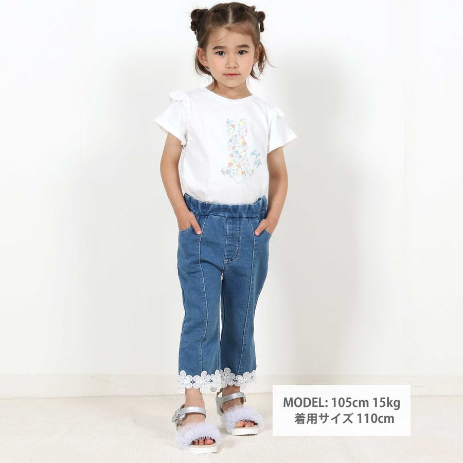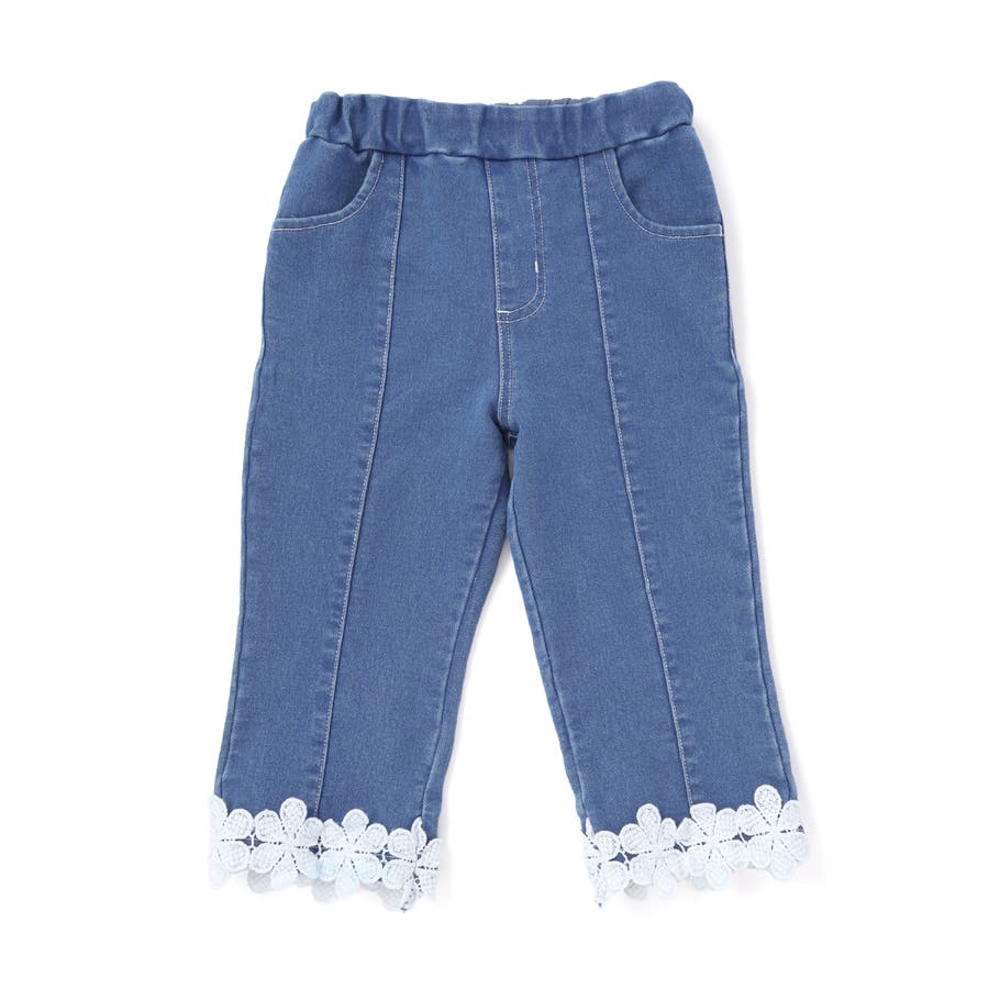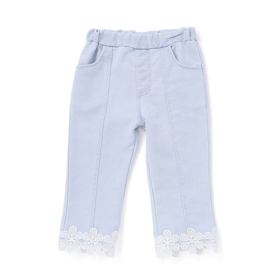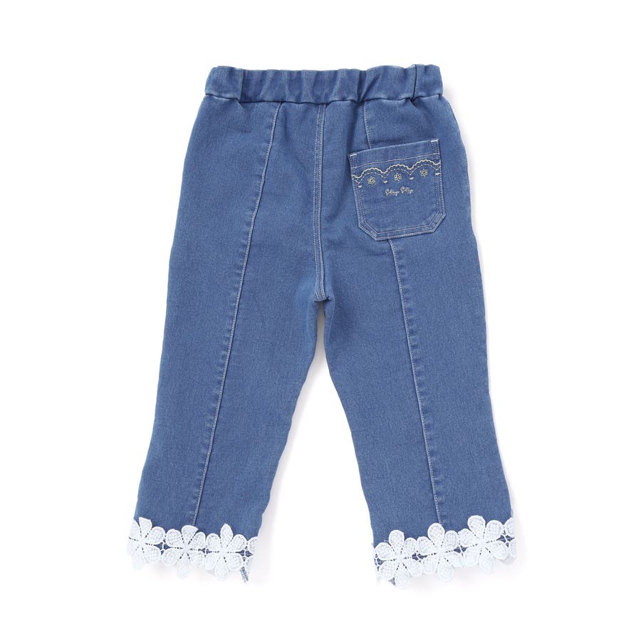 裾お花レースデニムニットセンタータック7分丈パンツ(80~130cm)