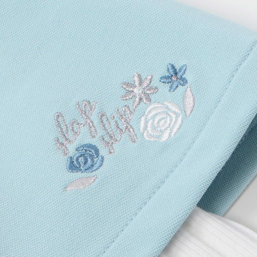 スカートの裾にほどこしたお花やブランドネームがアクセント、ラメ糸を使用しているからさりげなくきらめくのが◎