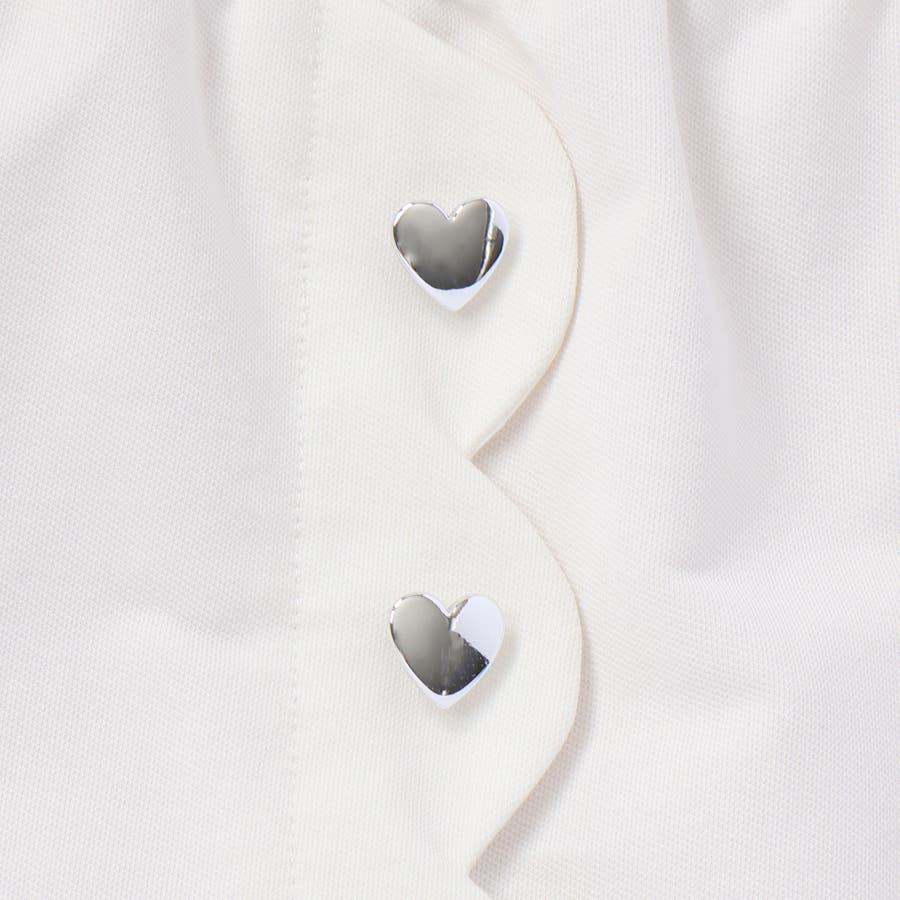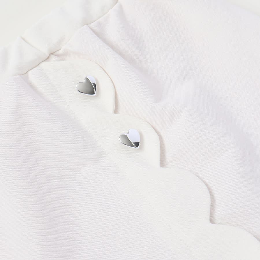 フロントにほどこしたスカラップ、上下に2つ並んだハートのボタンがキラッと輝くポイントになっています。