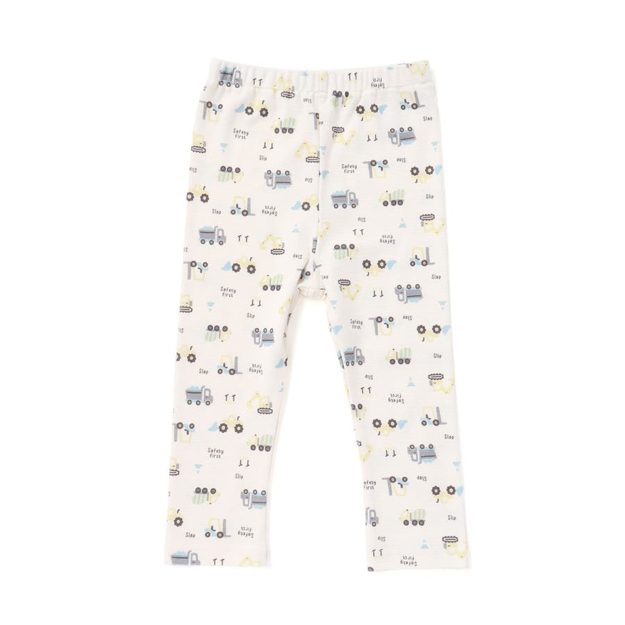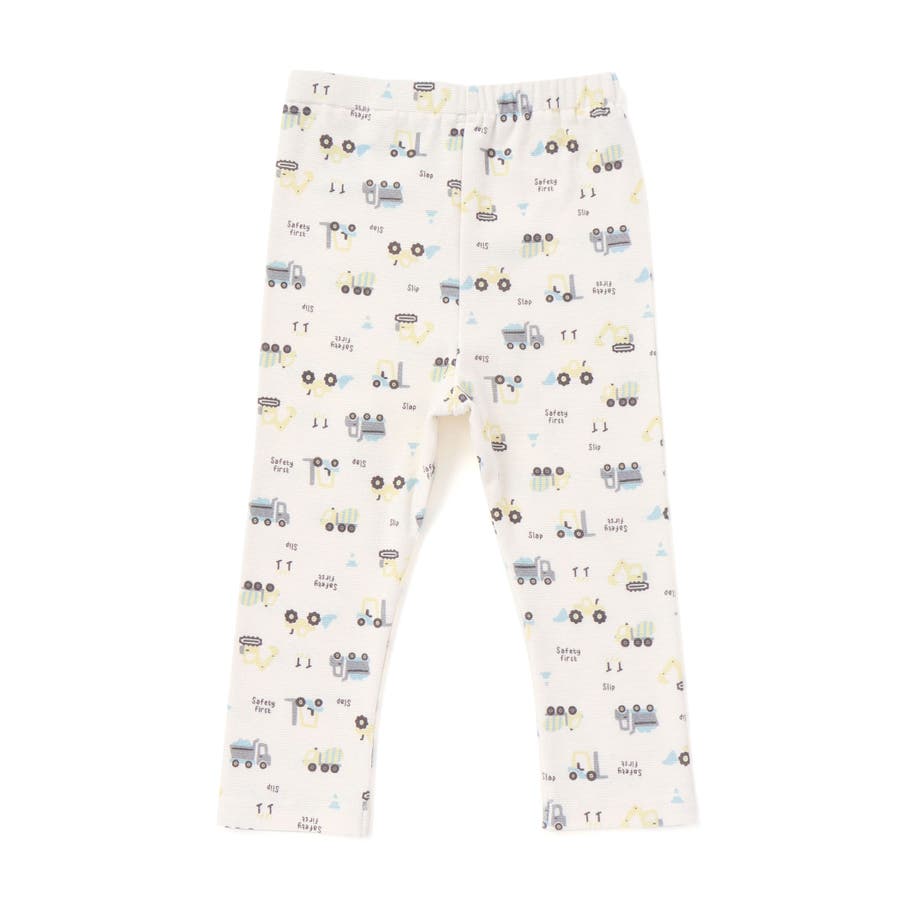 オフホワイト系:プリント柄が映えるオフホワイトの身生地に優しいカラーのはたらくくるまの総柄