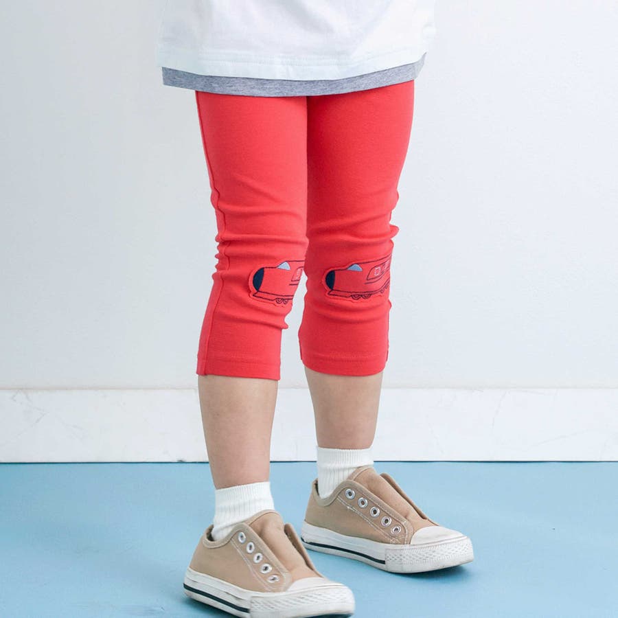 恐竜電車膝パッチ総柄ミラノリブ7分丈パンツ(80~120cm)