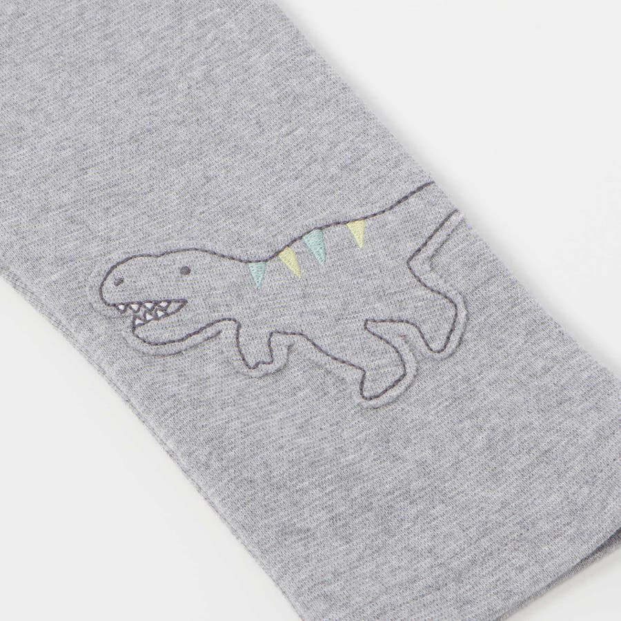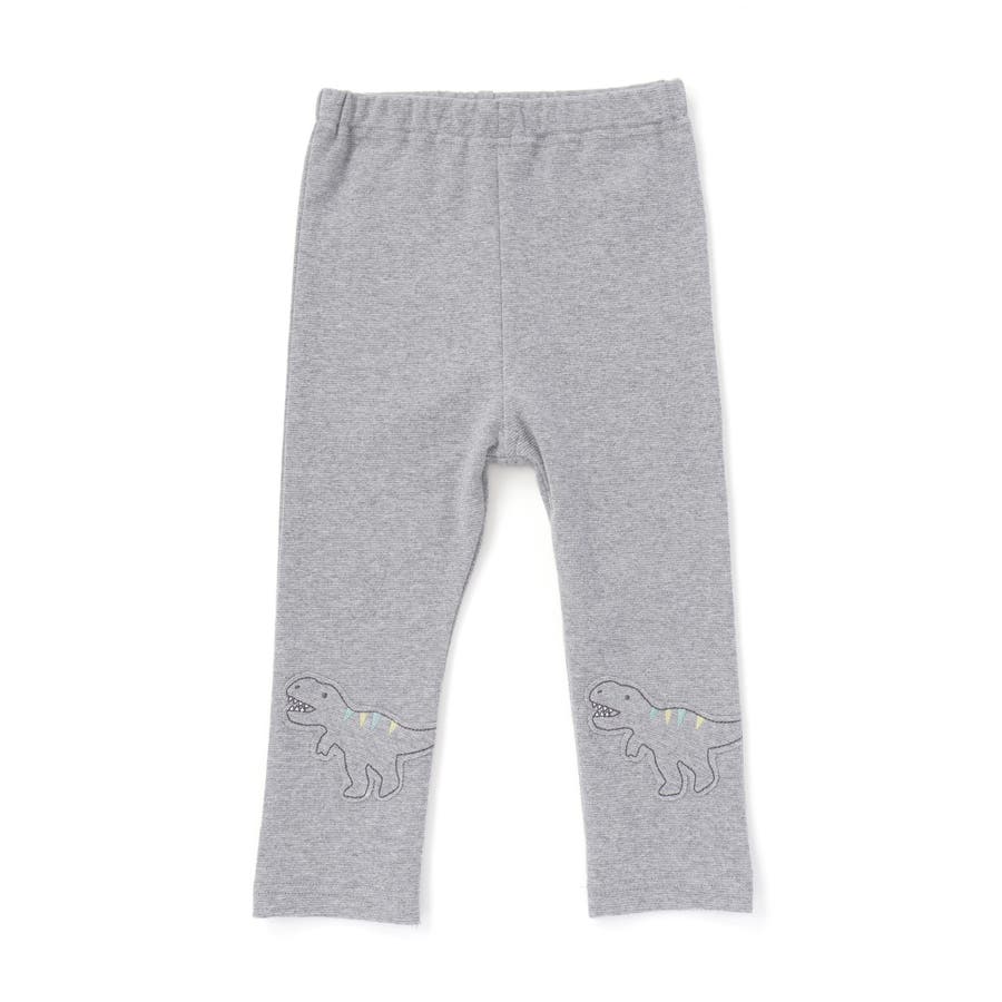 グレー:独特の風合いの杢グレーの身生地に大きなお口を開けた恐竜さんの膝パッチ