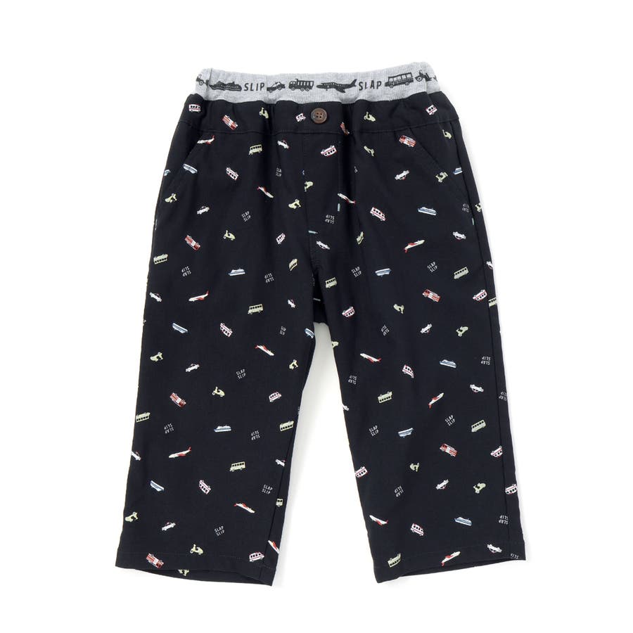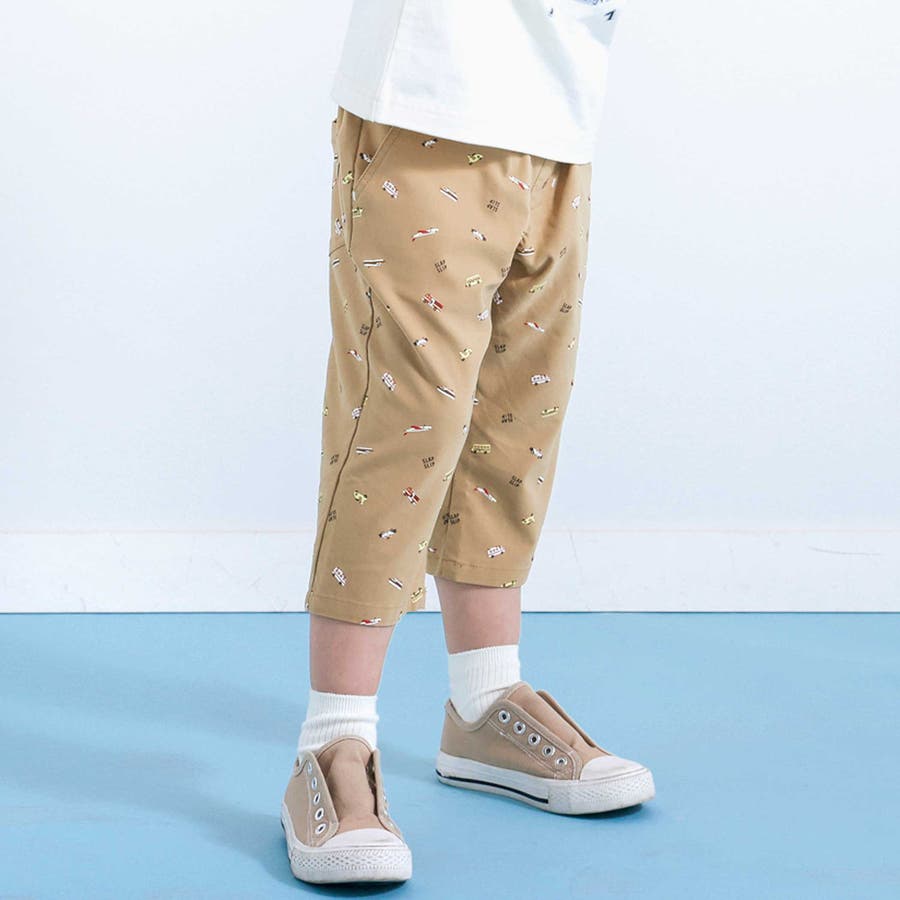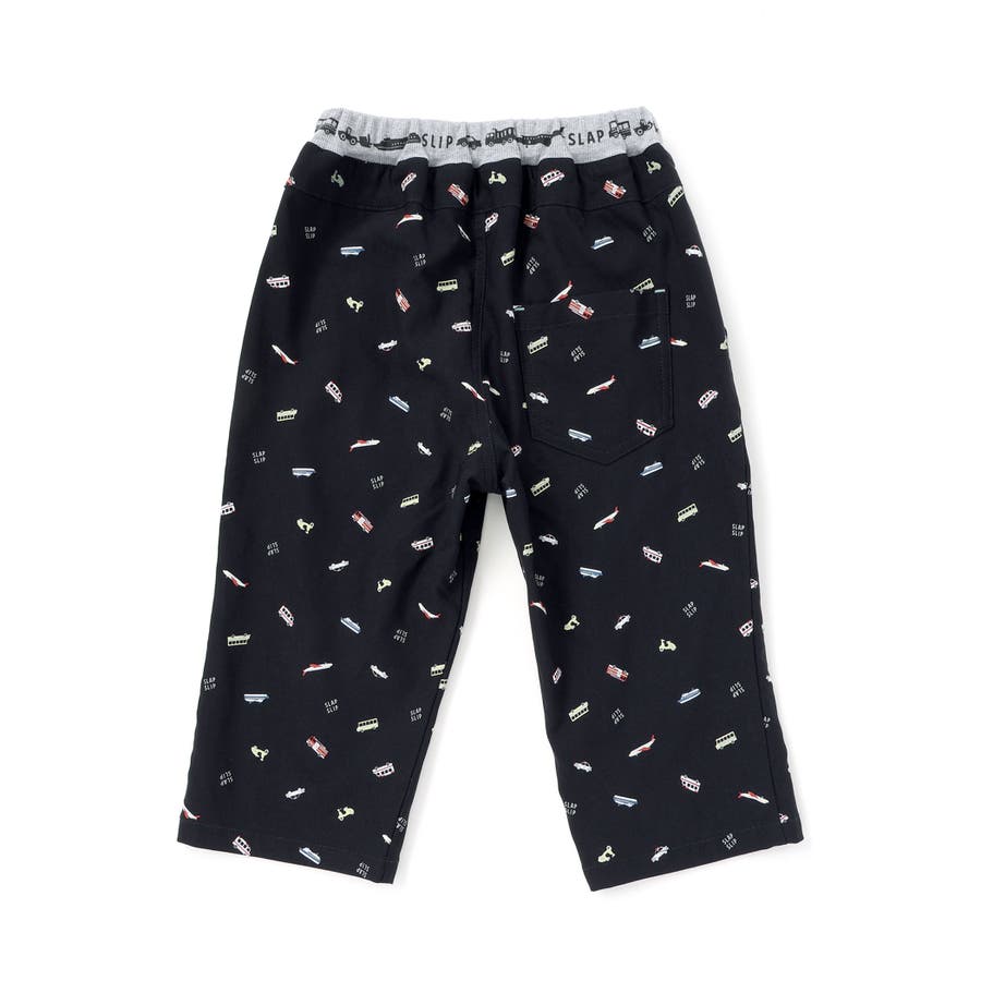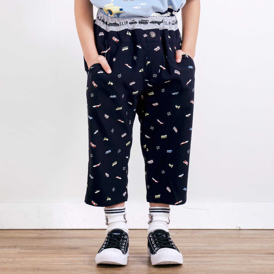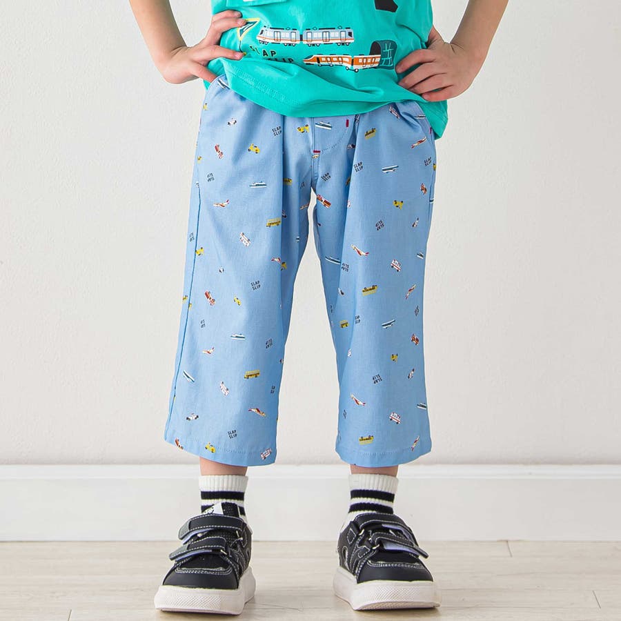 【らくのび】ウエストリブラインプリント乗り物柄ストレッチ7分丈パンツ(80~13…