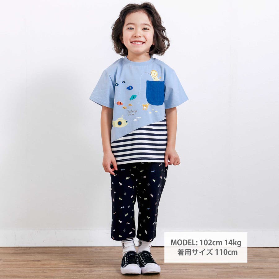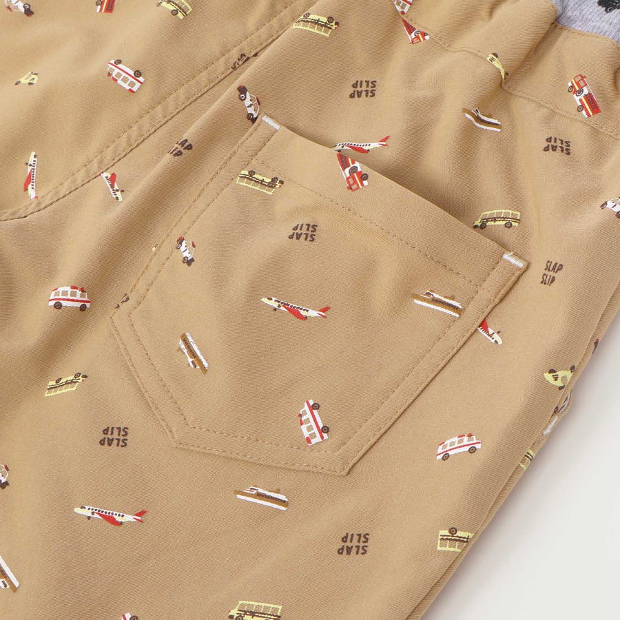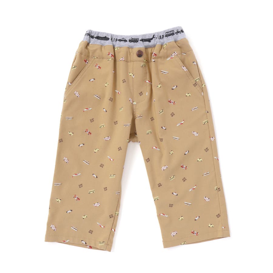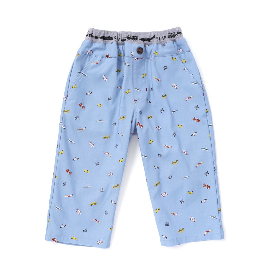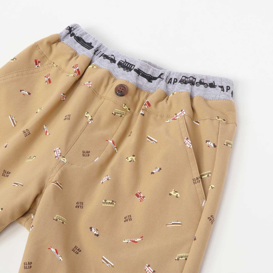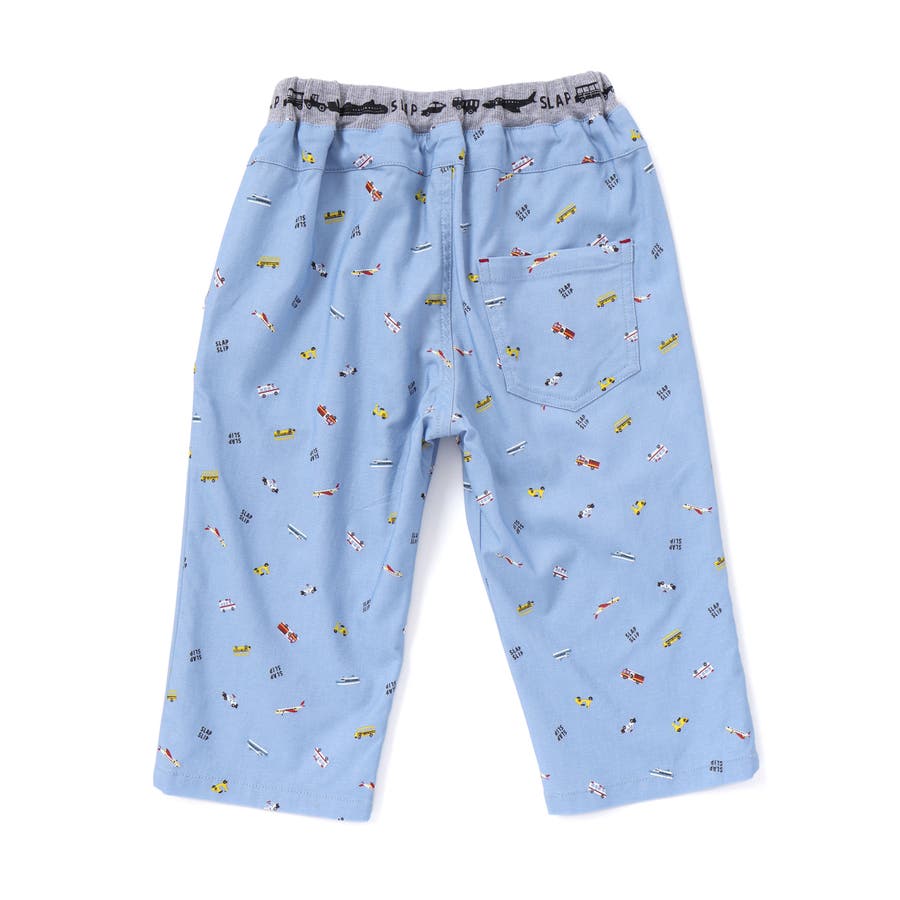 【らくのび】ウエストリブラインプリント乗り物柄ストレッチ7分丈パンツ(80~13…