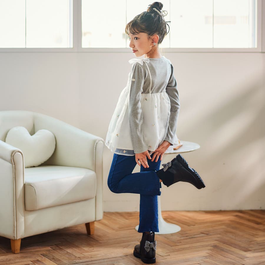 周りと差のつくシルエットがおしゃれな女の子用デニムパンツ。