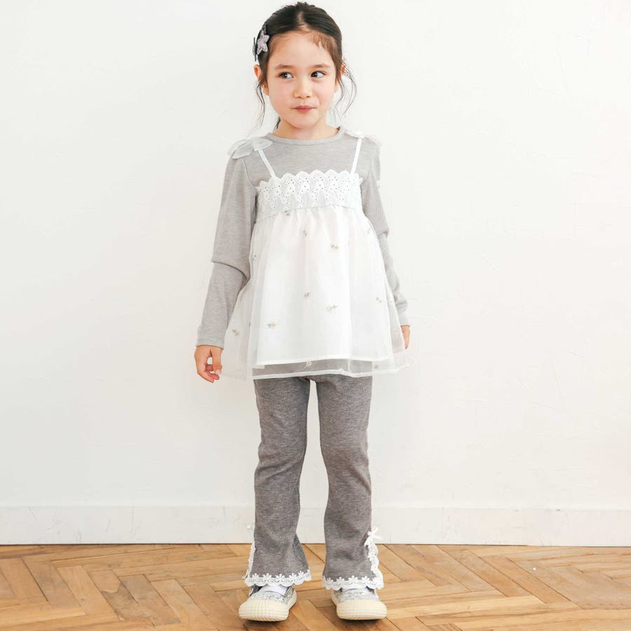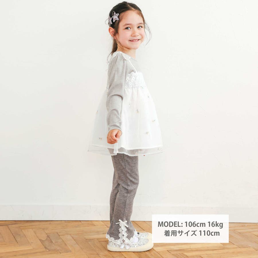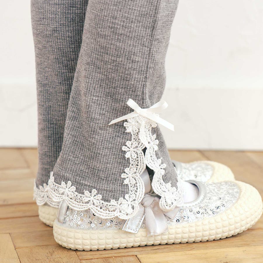 レースリボン裾フレア9分丈レギンス(80~130cm)
