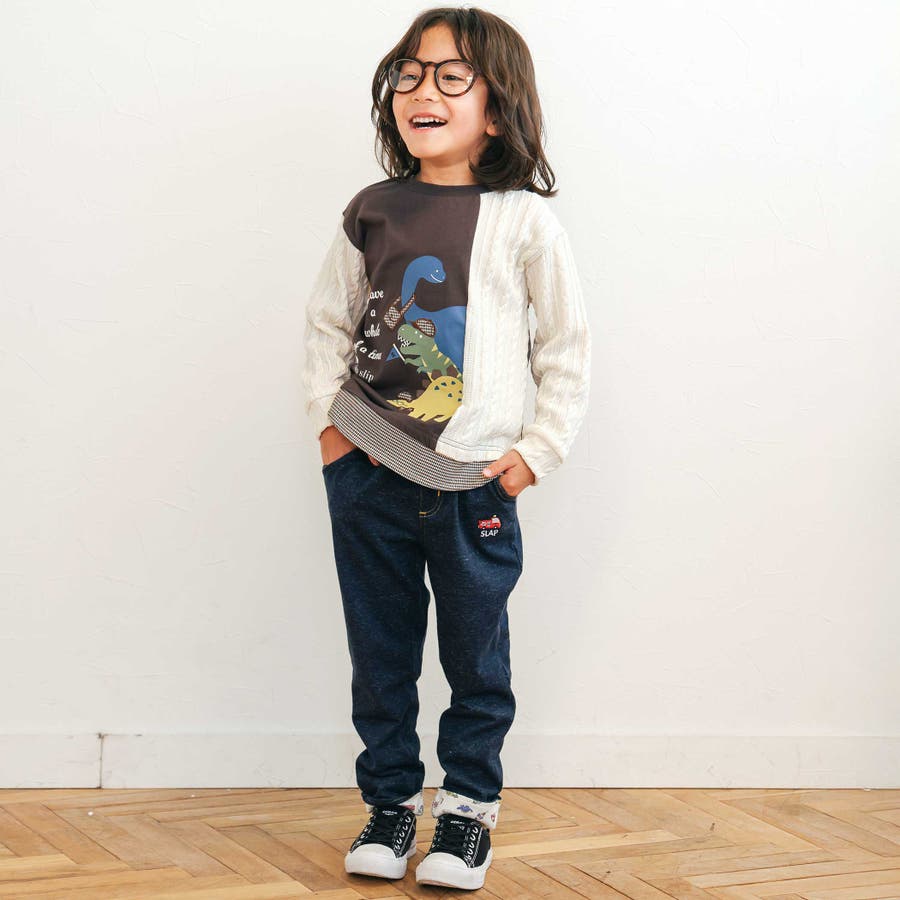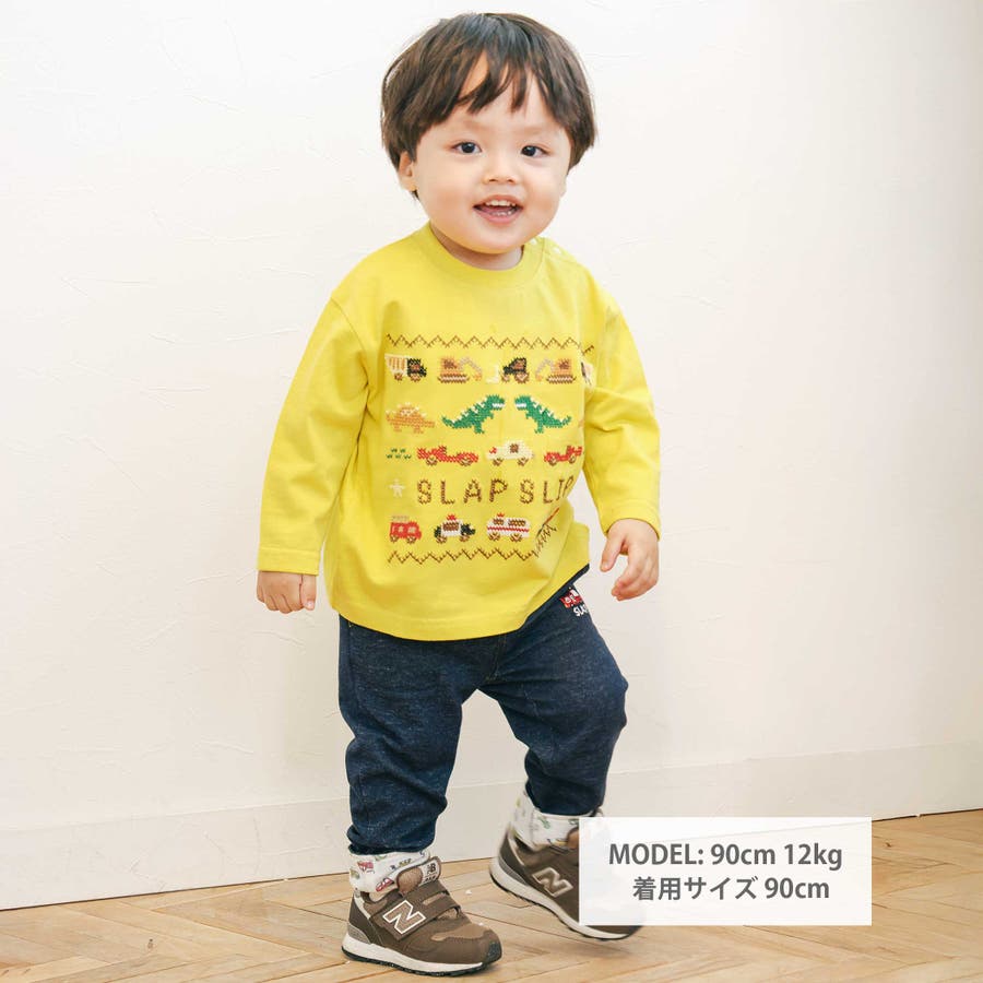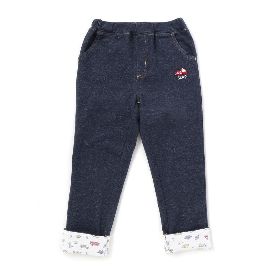 消防車恐竜折り返し柄プリントデニム風パンツ(80~130cm)