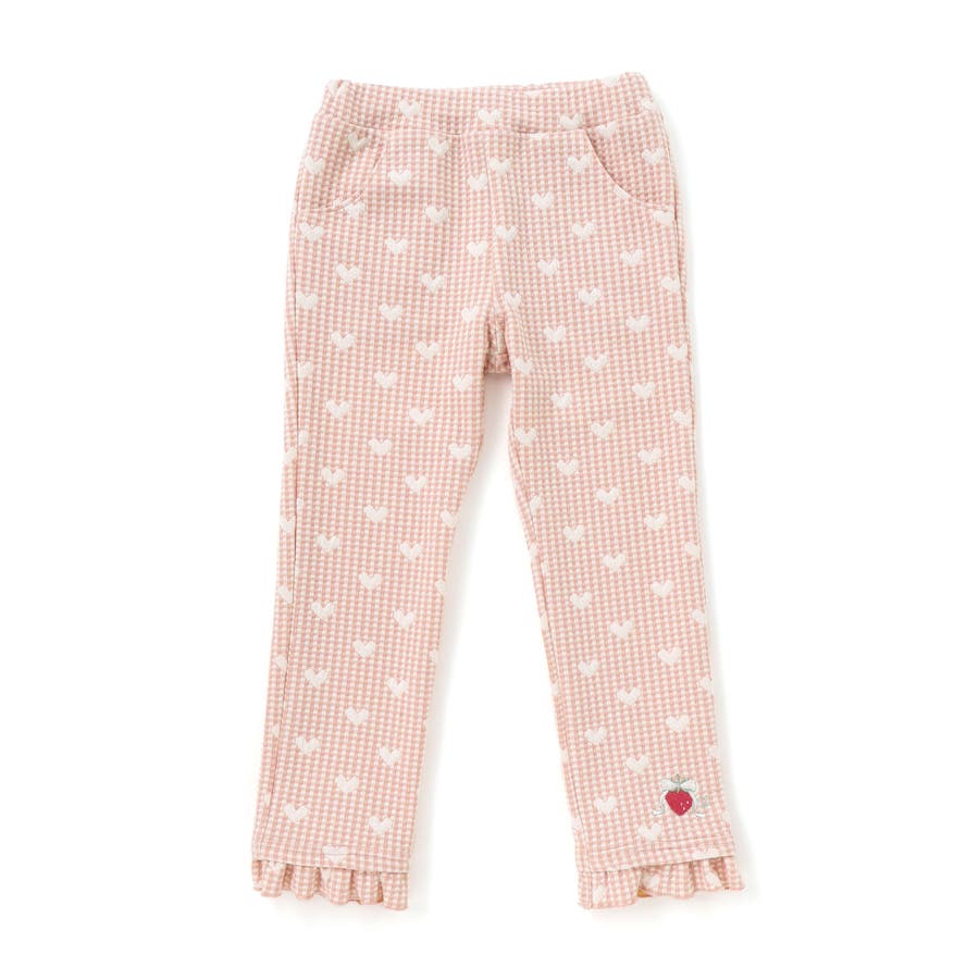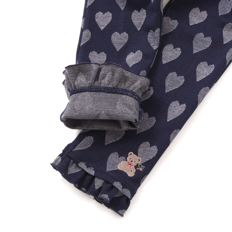 裾フリルお尻ポケットハートがいっぱい総柄パンツ(80~120cm)