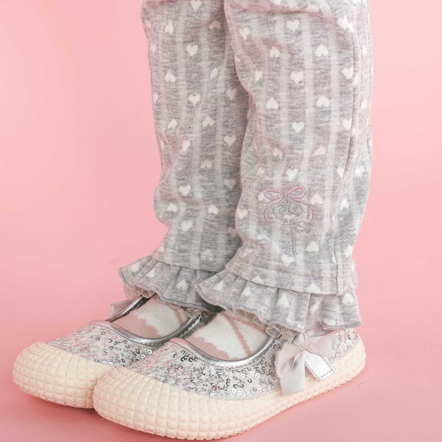 ハートのモチーフがたくさん!着るだけで気分も明るくなるラブリーな女の子らしいロングパンツ。