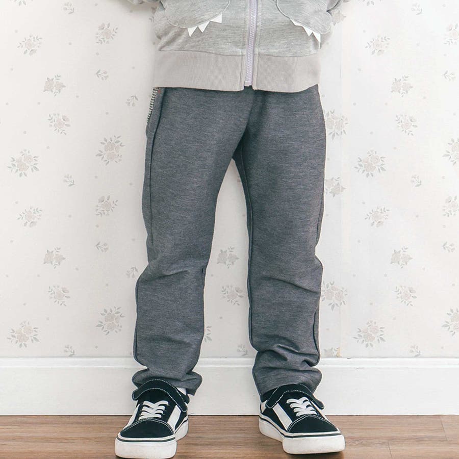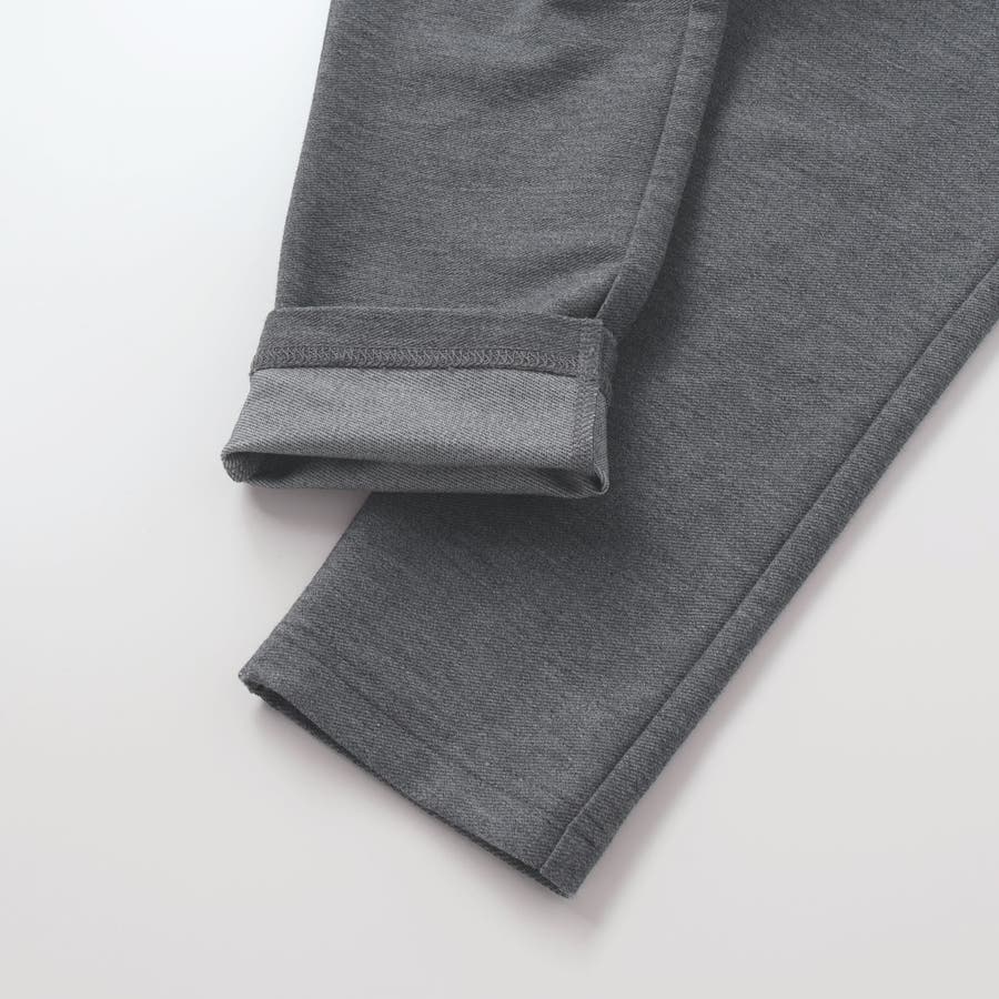 デニムカットツイルを使用したネイビーはデニムっぽい風合いながら着心地はスウェット感覚で着られるのでデニムが苦手なキッズにもおすすめです。