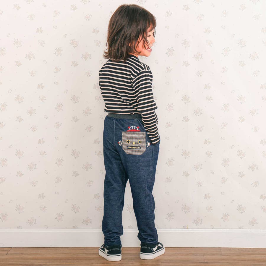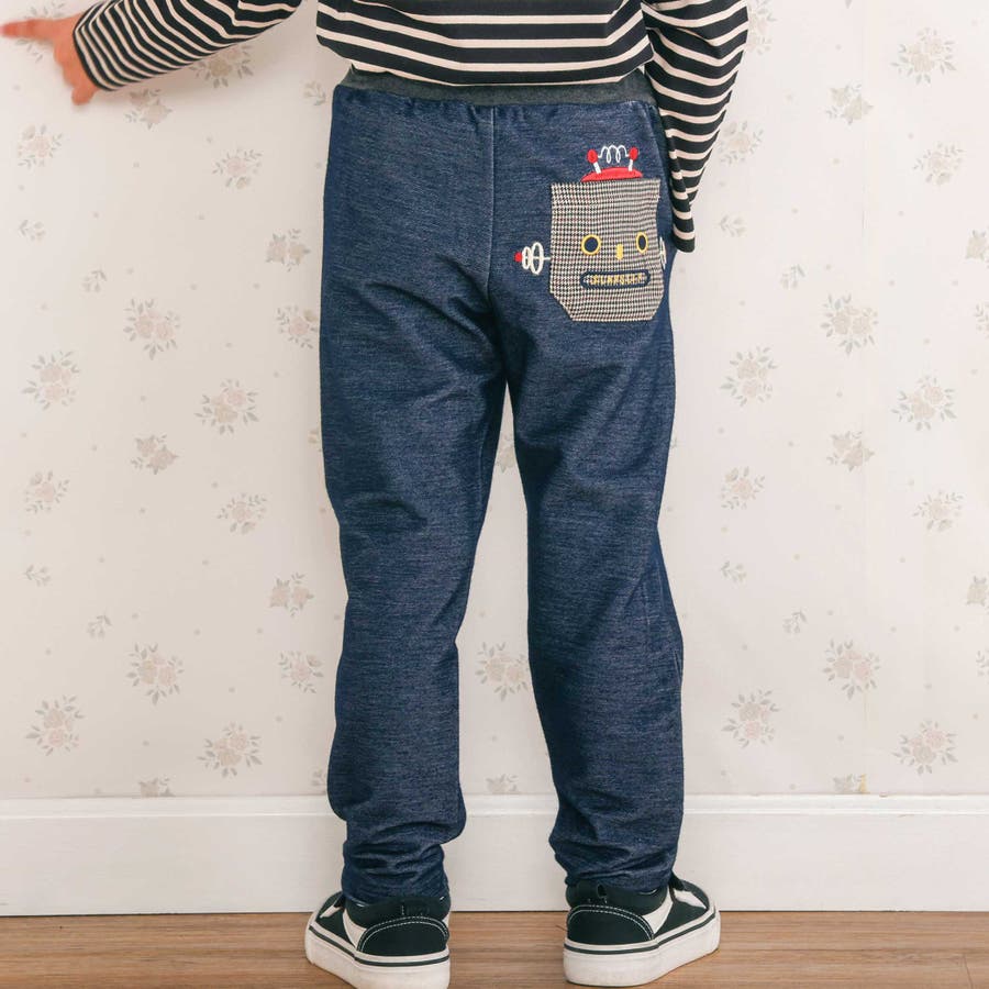 おしりのポケットのまあるいおめめのロボットモチーフがかわいいポイント◎