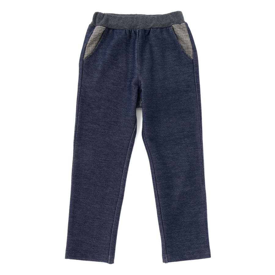 配色のチェックがおしゃれな男の子用ロングパンツ。