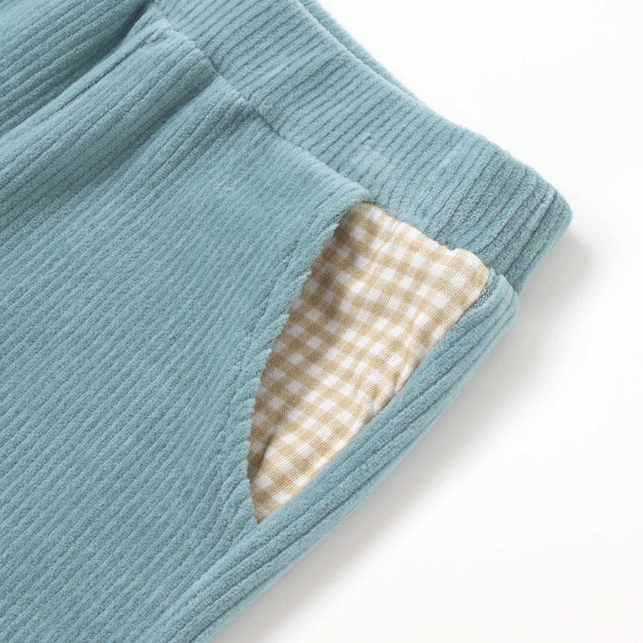 柔らかいニットコール素材を使用した、男の子用ロングパンツ。
