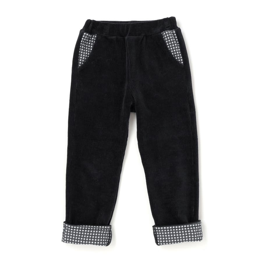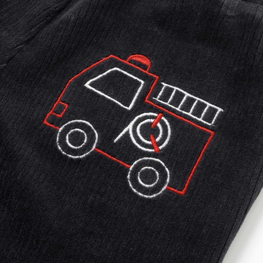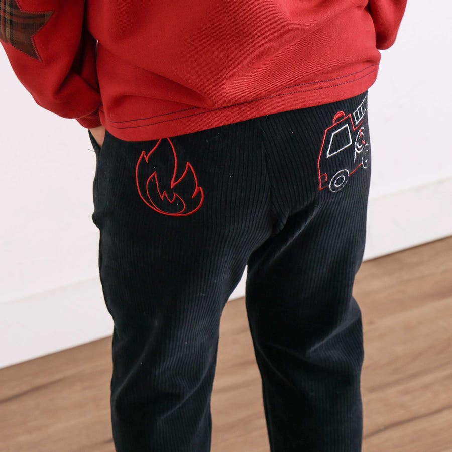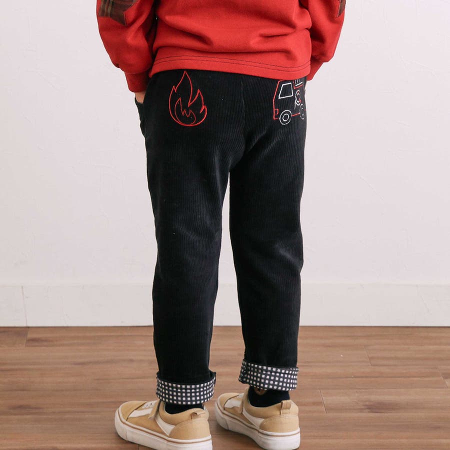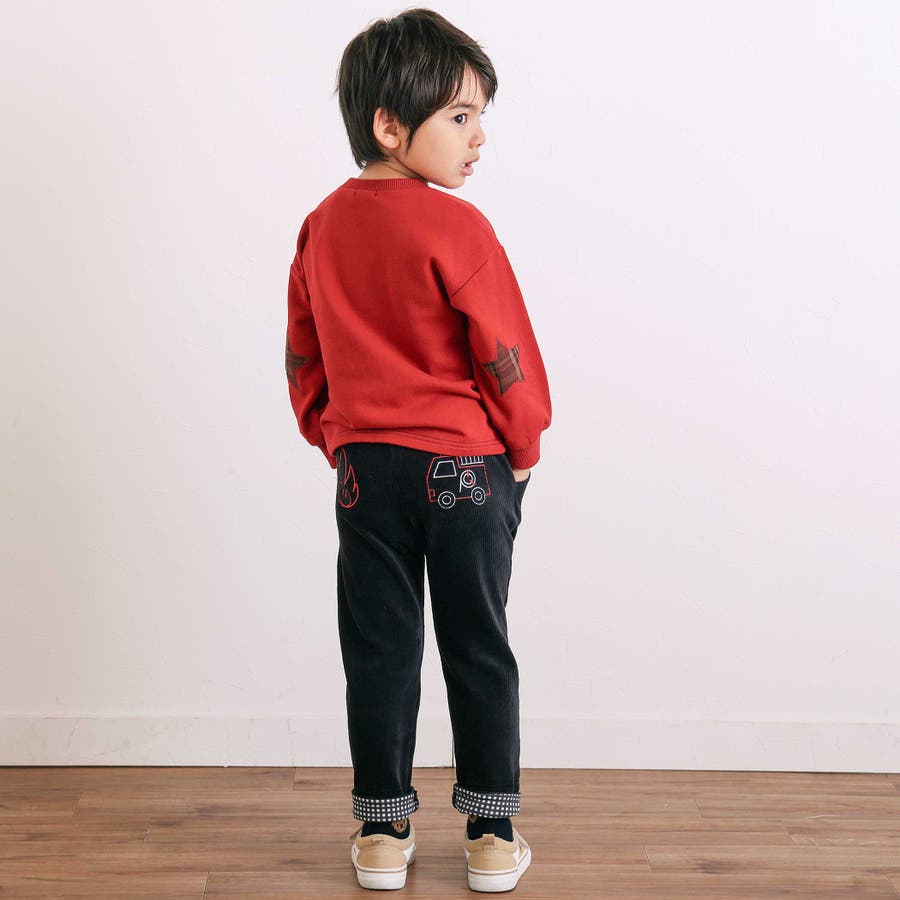 消防車恐竜おしりパッチ折り返し裾チェックロングパンツ(80~130cm)