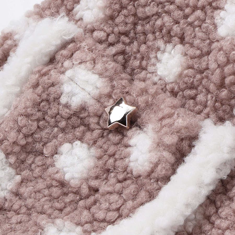 オフホワイトはキラキラ輝くお星さま刺しゅう柄ボア、ピンクがかったブラウン系はドットのボアで、それぞれ個性のある華やかさを演出します。
