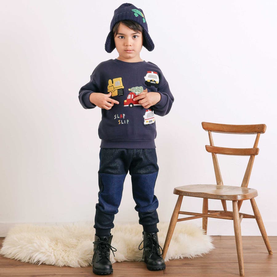 あたたかく柔らかい裏シャギー素材を使用した男の子用ロングパンツ。