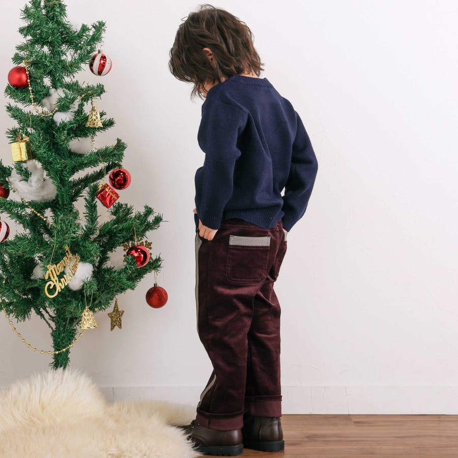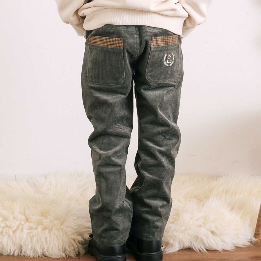 シーズンムードをプラスするコーデュロイ素材を使用した、男の子用ロングパンツ。