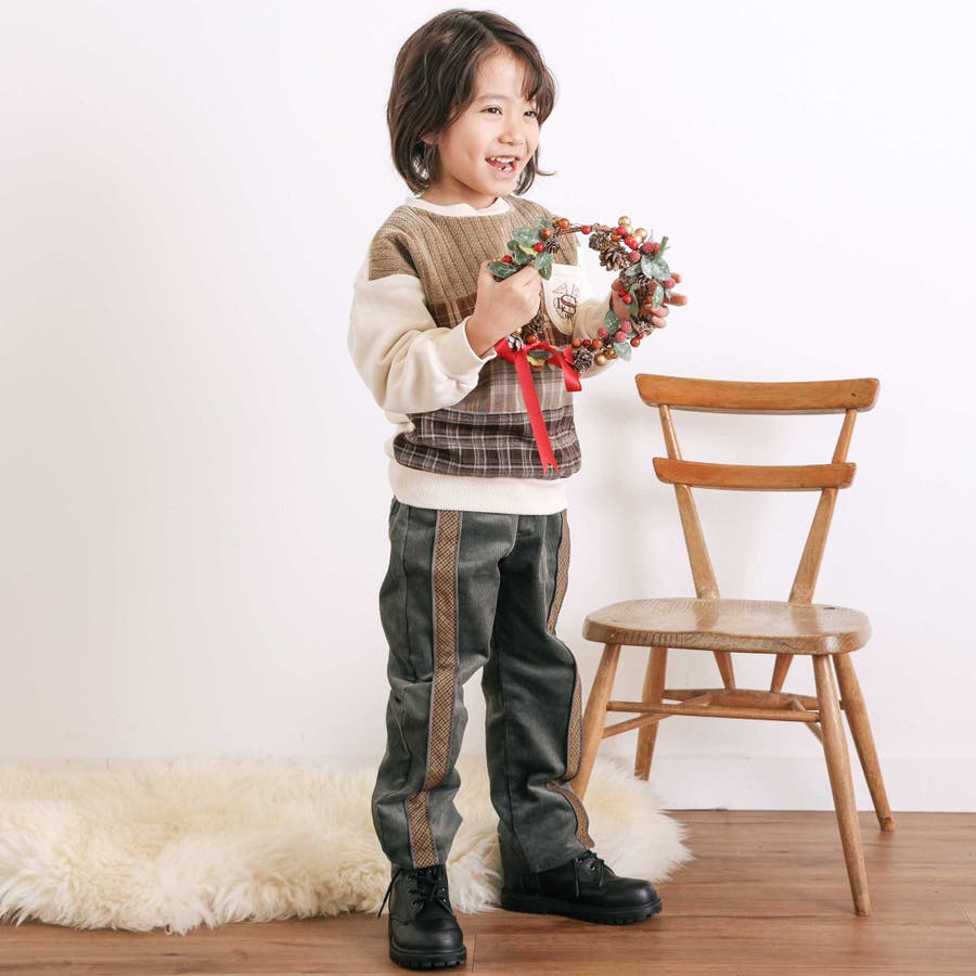パイピングチェックサイドラインロングパンツ(80~130cm)