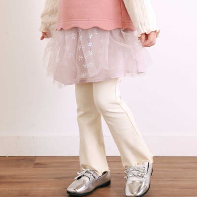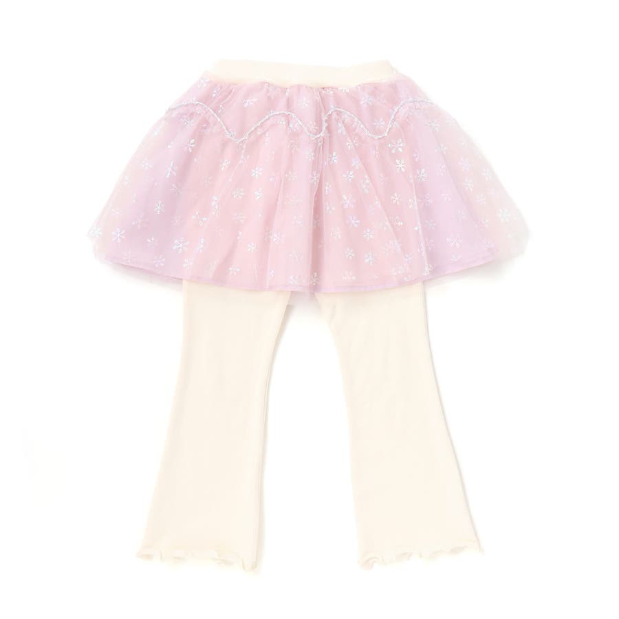 ふわふわドット雪柄チュールセミフレアスカッツ(80~120cm)