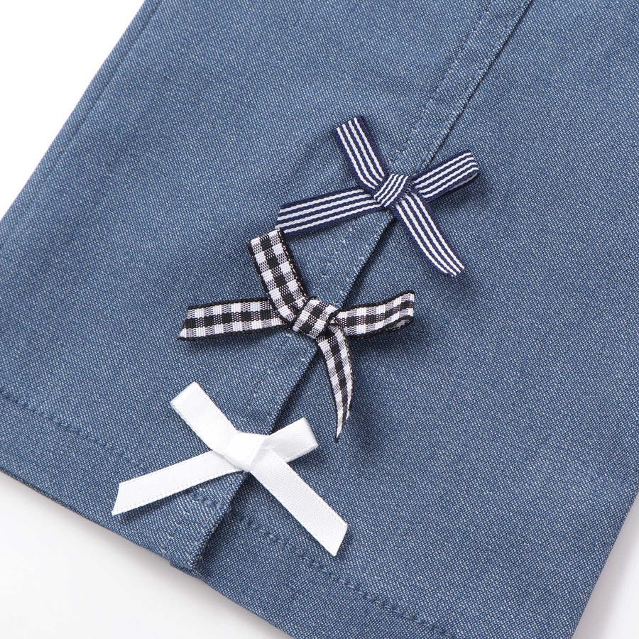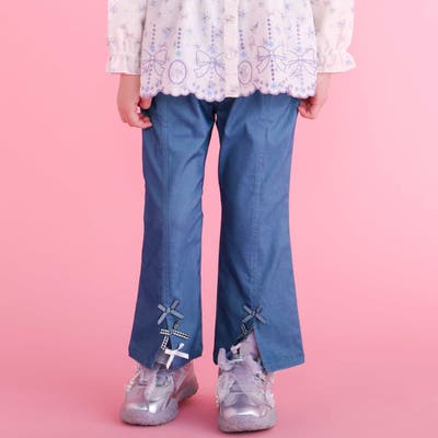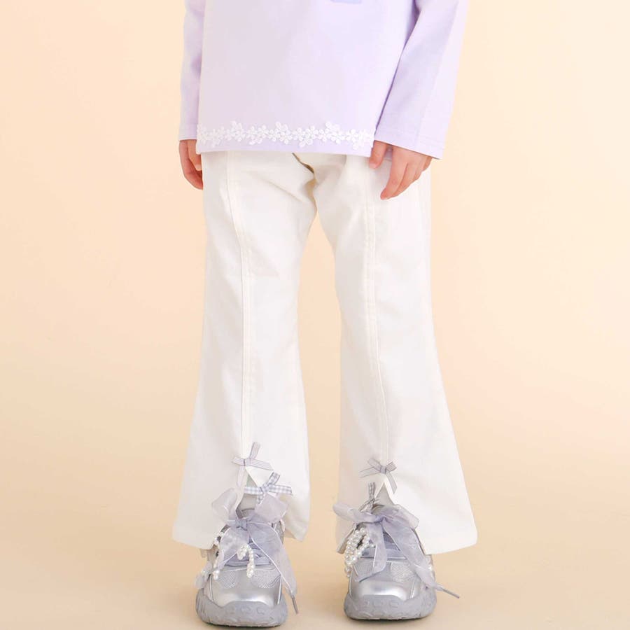 裾にあしらったリボンがさりげないポイントになった女の子用パンツ。