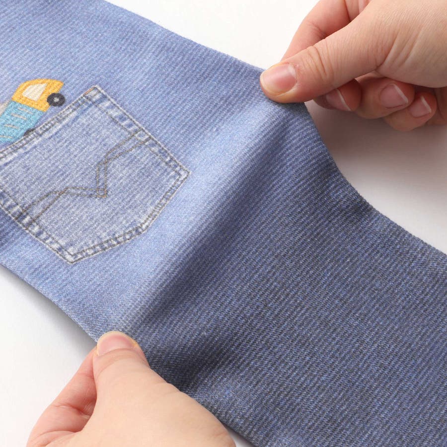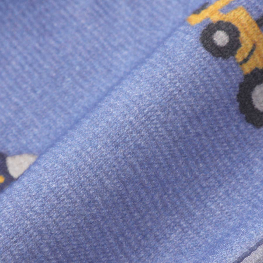 ブルーは、はたらく車や飛行機のプリントに、工具をポケットに入れているようなだまし絵風デザインを加え、元気でアクティブな雰囲気に仕上げました。