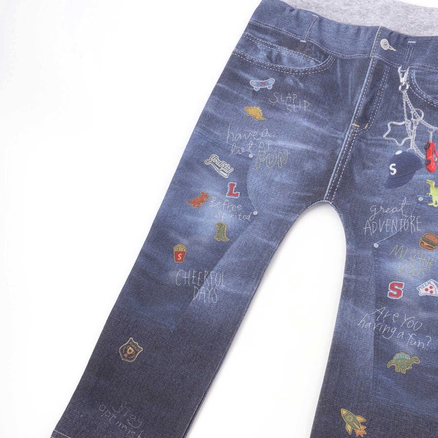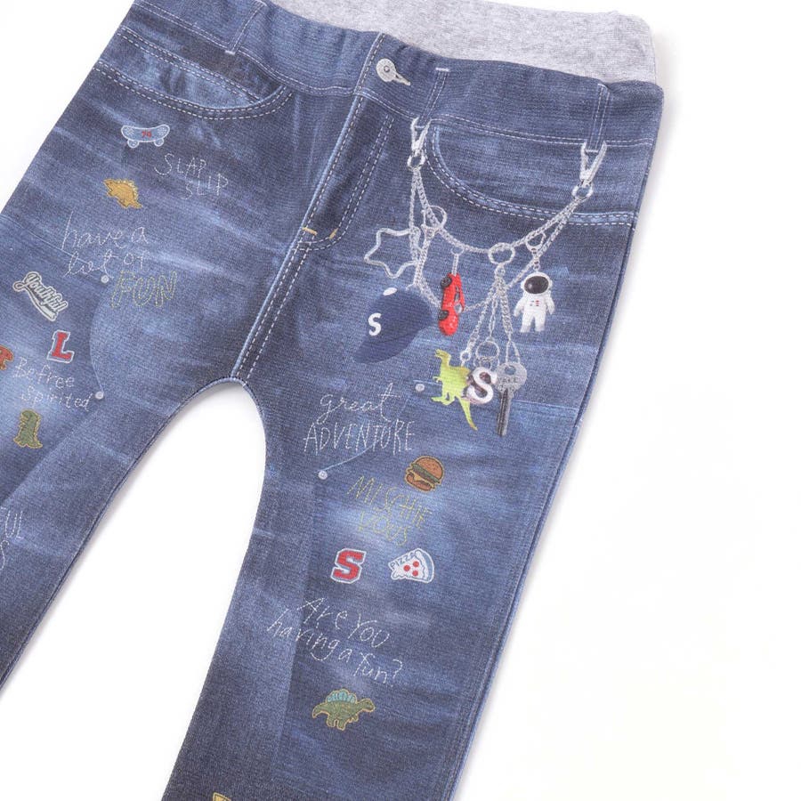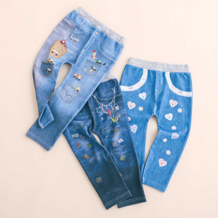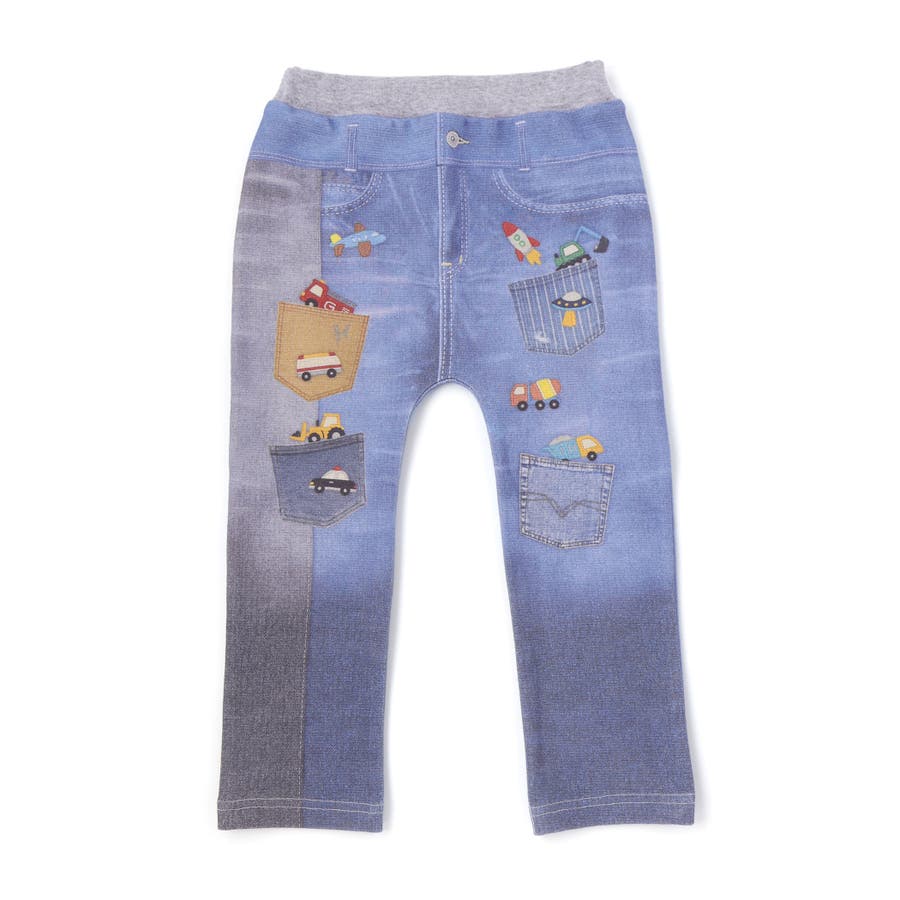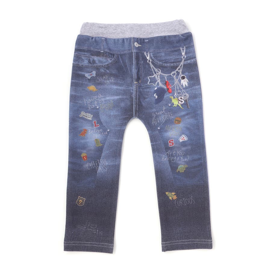 デニム裏プリントミラノリブ8分丈パンツ(80~110cm)