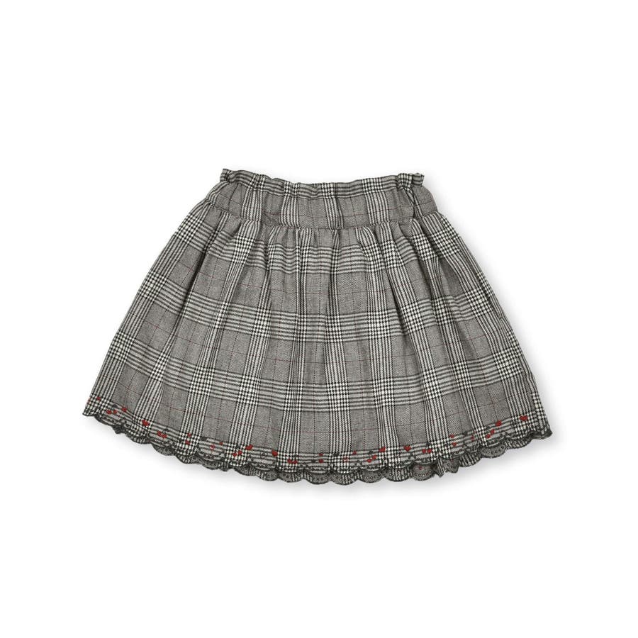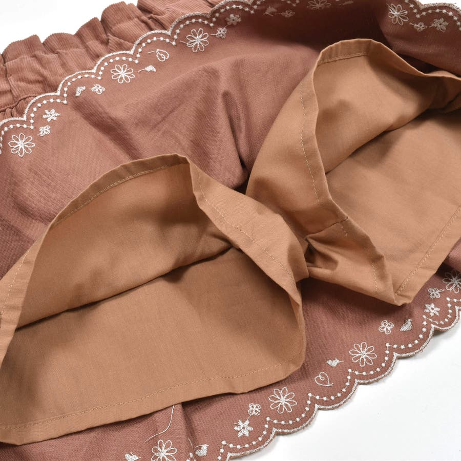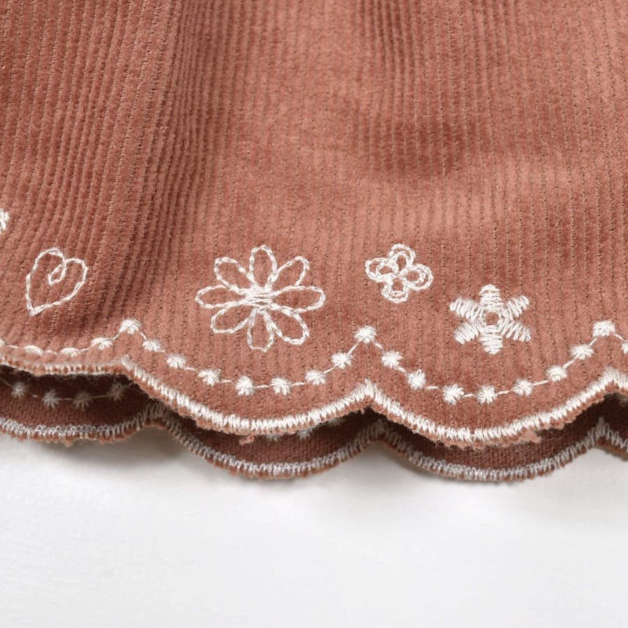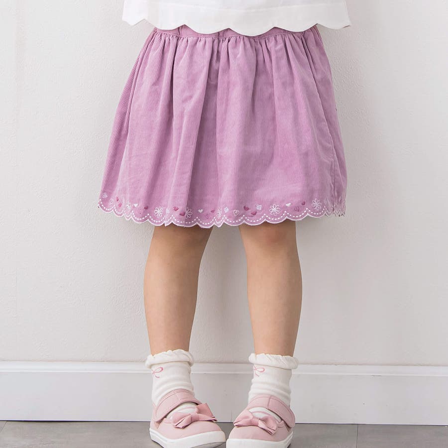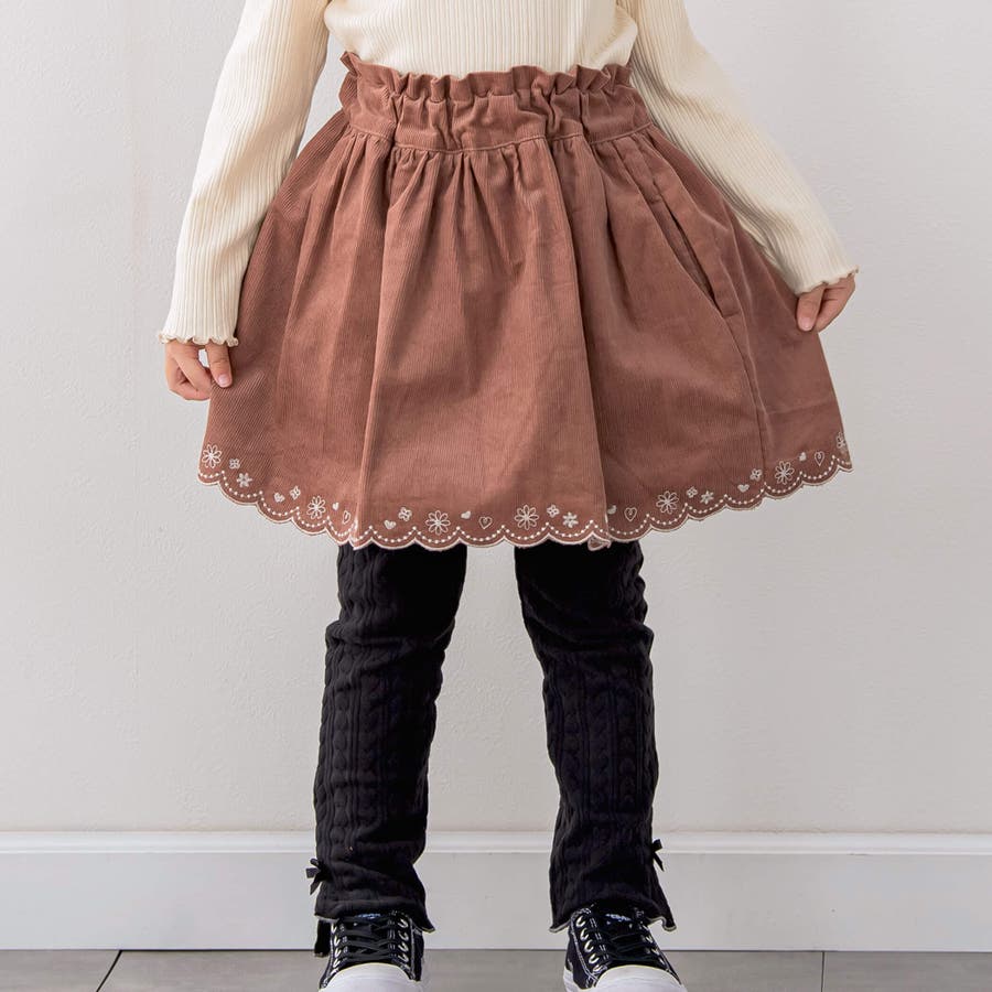 コーデュロイチェック柄裾スカラップ刺しゅうスカパン