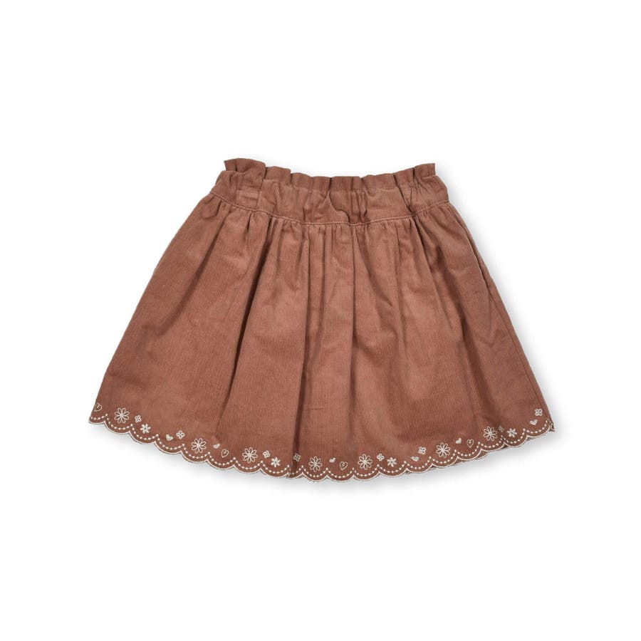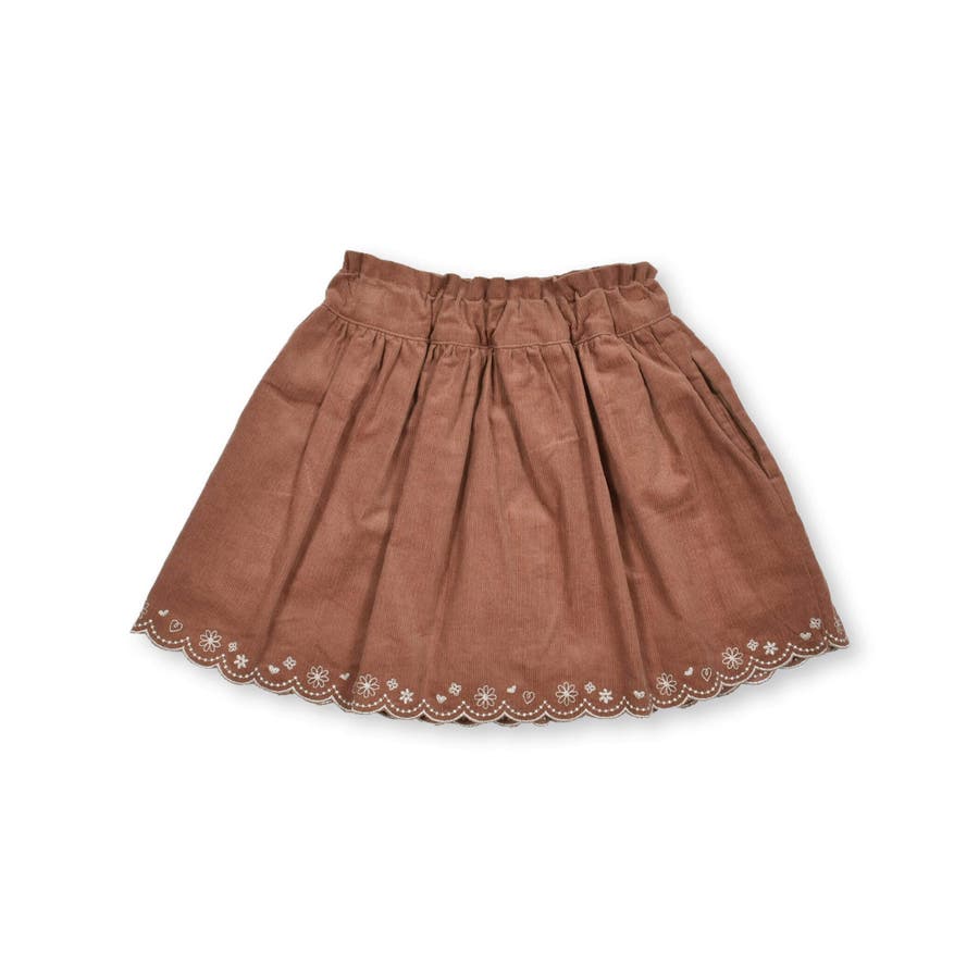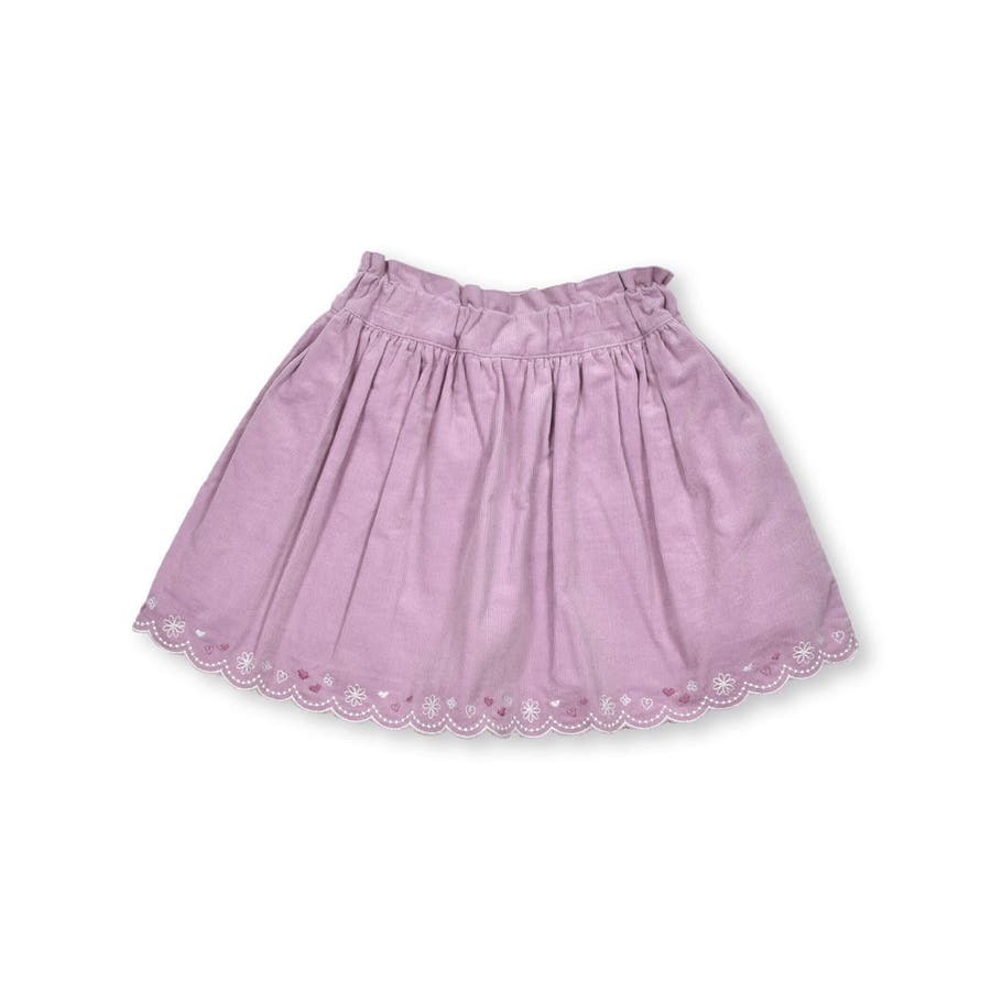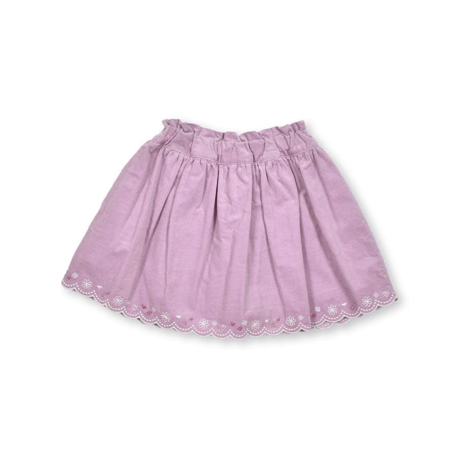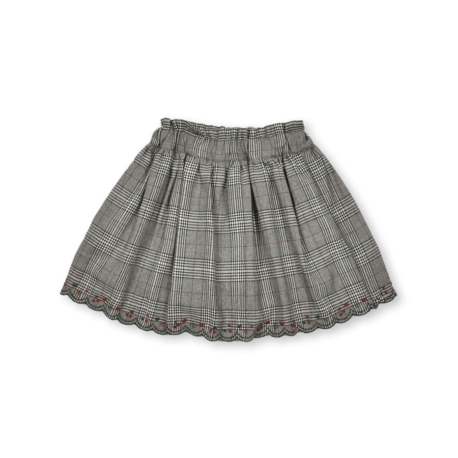 コーデュロイチェック柄裾スカラップ刺しゅうスカパン