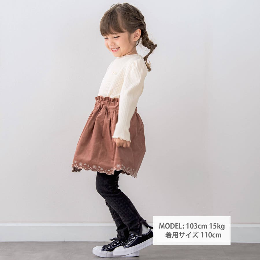 スカート風のデザインながらインナーパンツがついているので、風の強い日でも外遊びの日でも安心して着用していただけます。