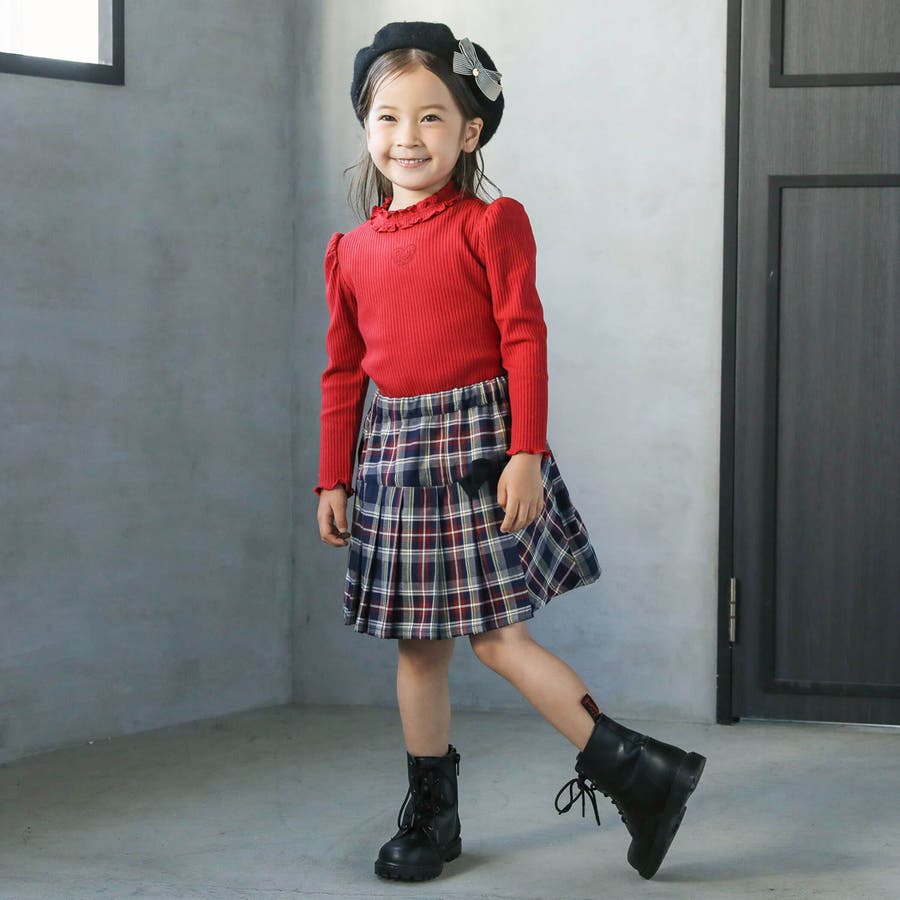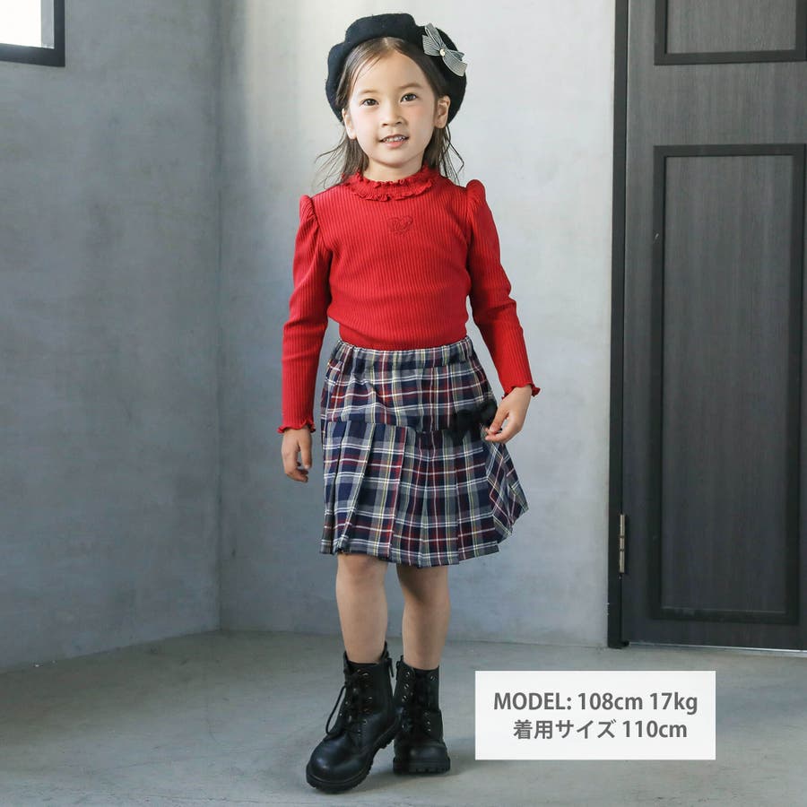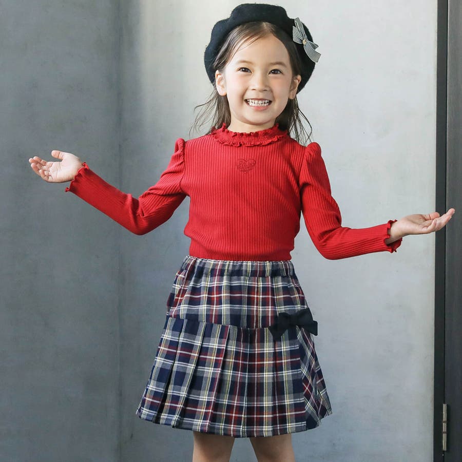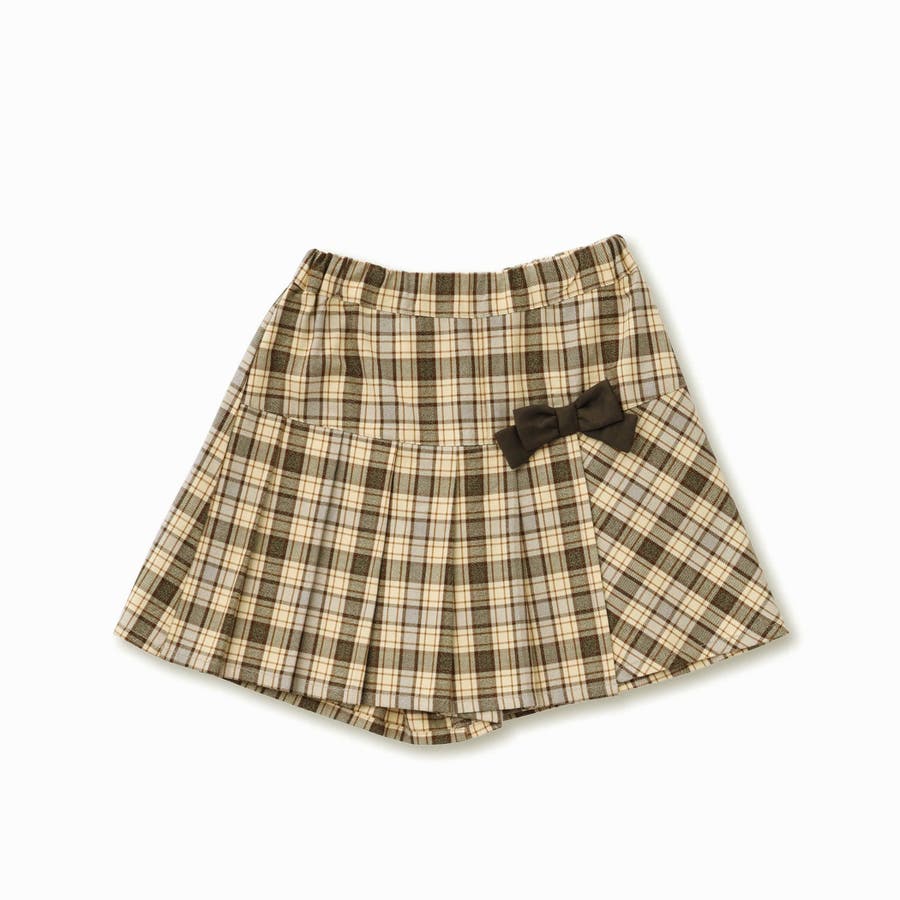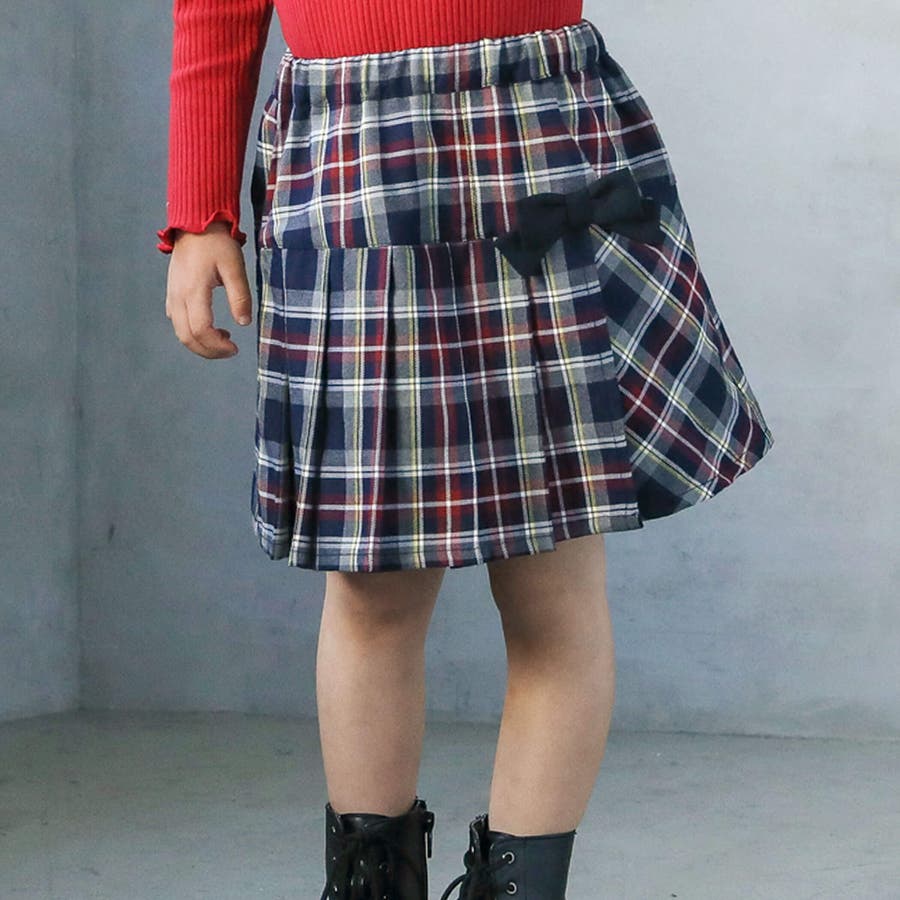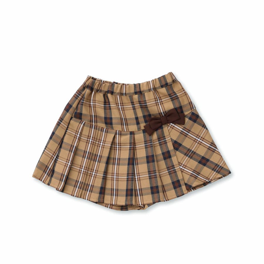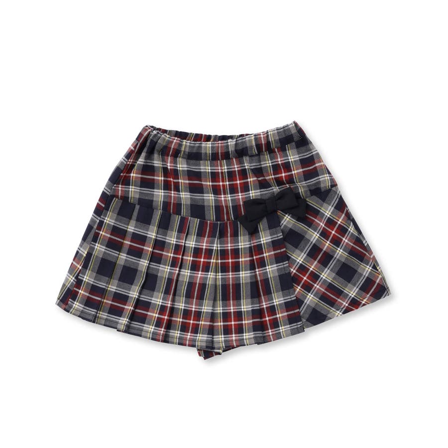 【お揃い】リボン付きチェック柄プリーツスカパン(90~140cm)