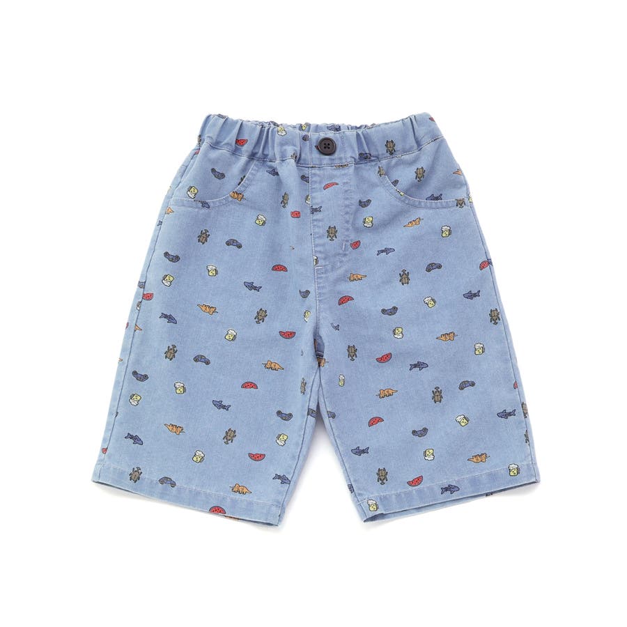 ツイルデニム総柄プリントハーフパンツ(80~130cm)