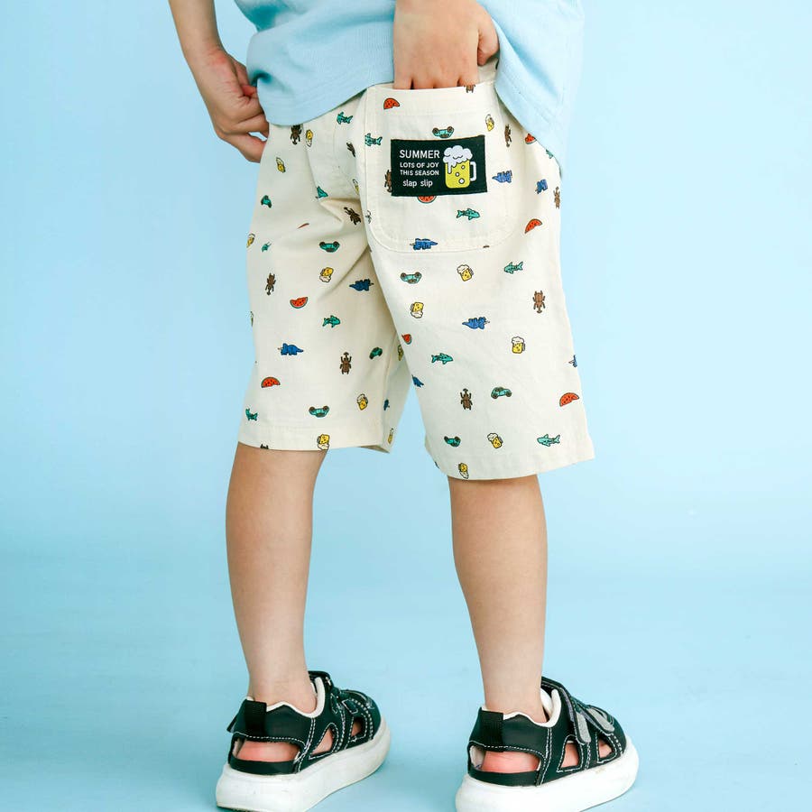 パッと目を引く総柄の男の子用ハーフパンツ。