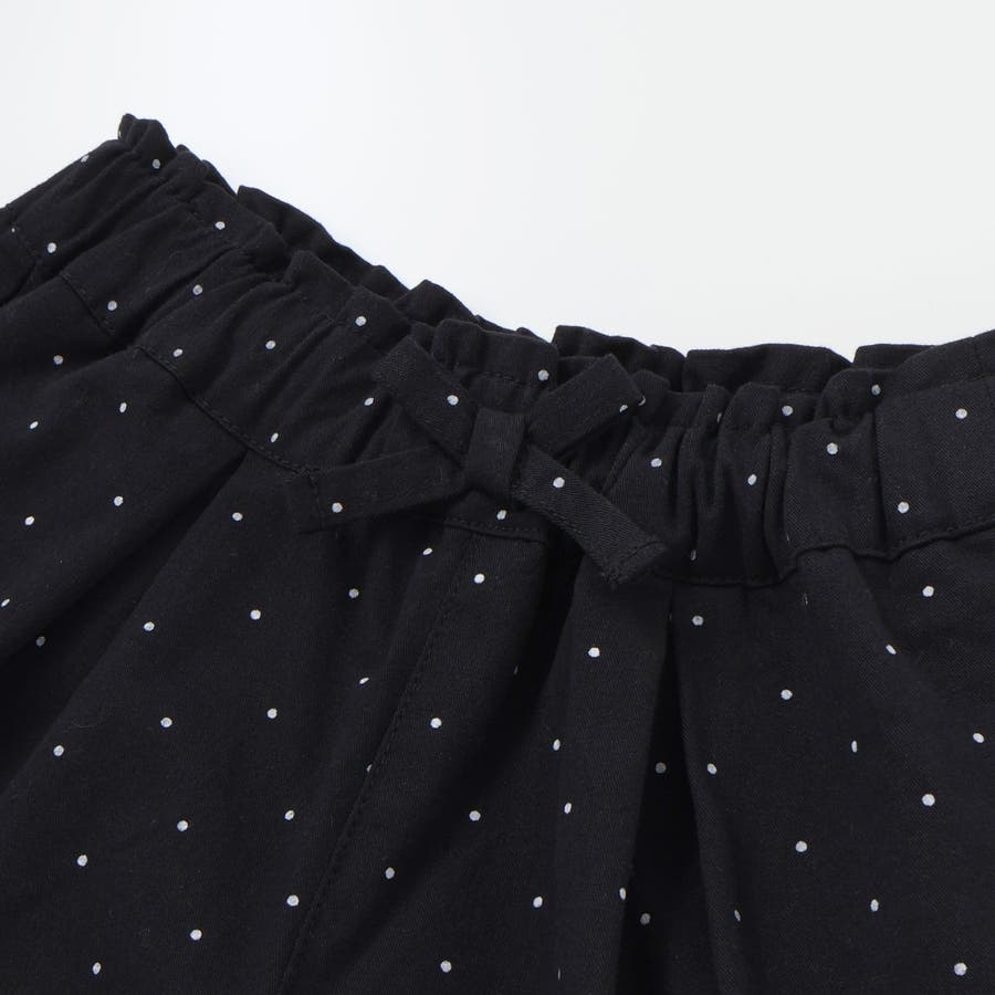 ウエスト部分にはリボンをあしらい、トップスをインしたときも可愛く決まります。