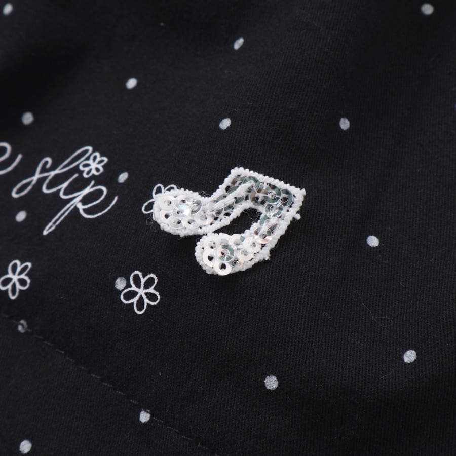 ポイントとしてグリッタープリントの小さなお花と音符モチーフをオン。