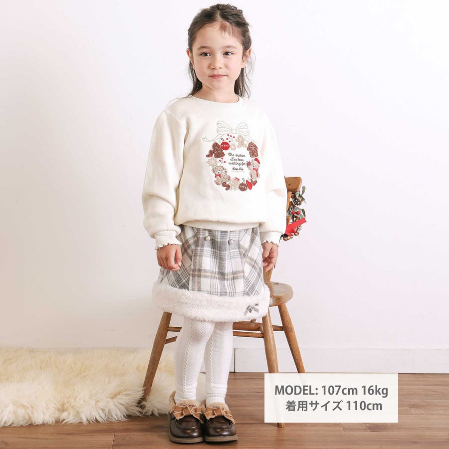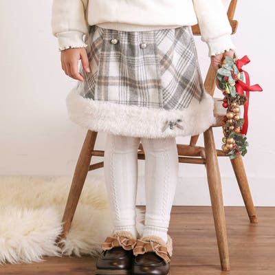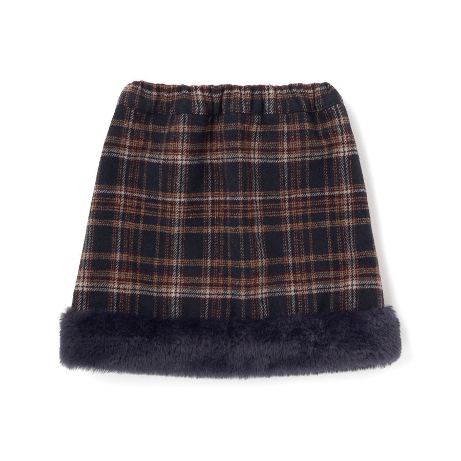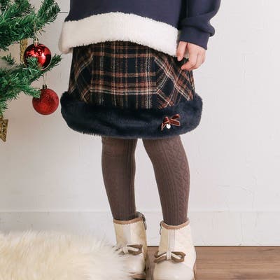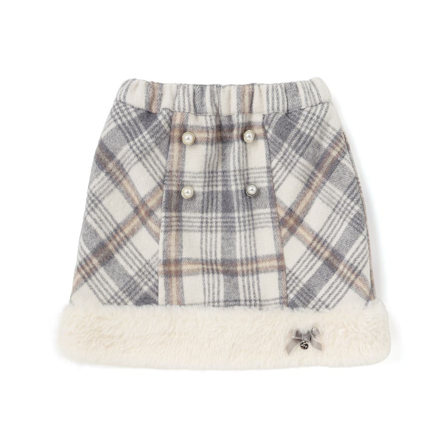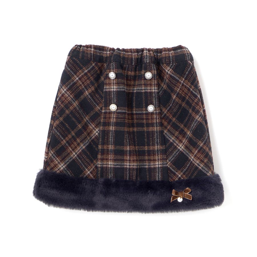 【お揃い】ファー切替チェック台形スカート(90~130cm)