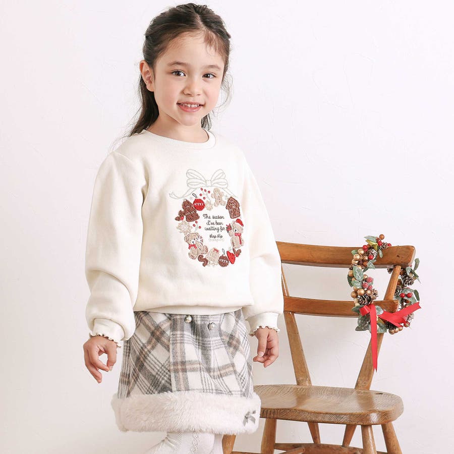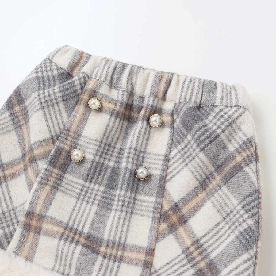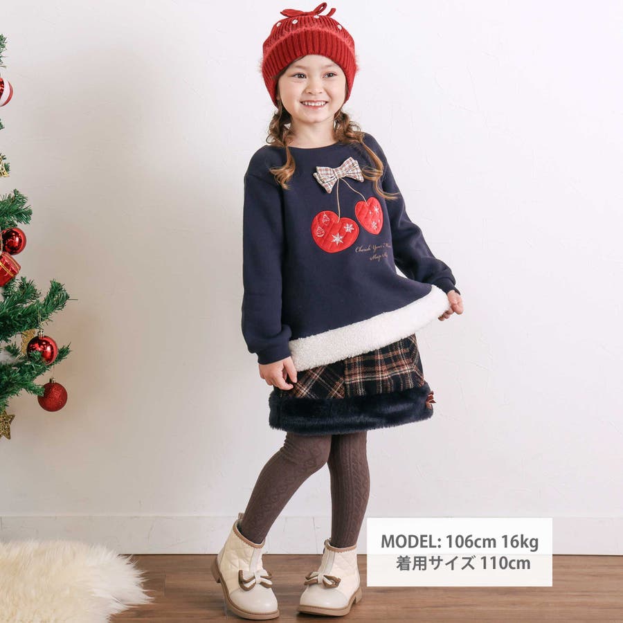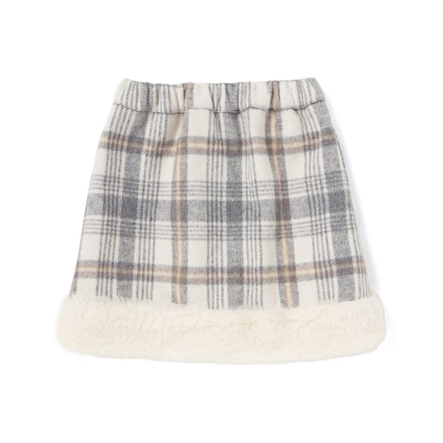 【お揃い】ファー切替チェック台形スカート(90~130cm)