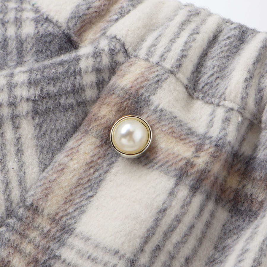 チェックの落ち着いた色合いと、華やかな装飾の組み合わせで、女の子らしい可愛らしさと上品さを兼ね備えたスカートになっています。