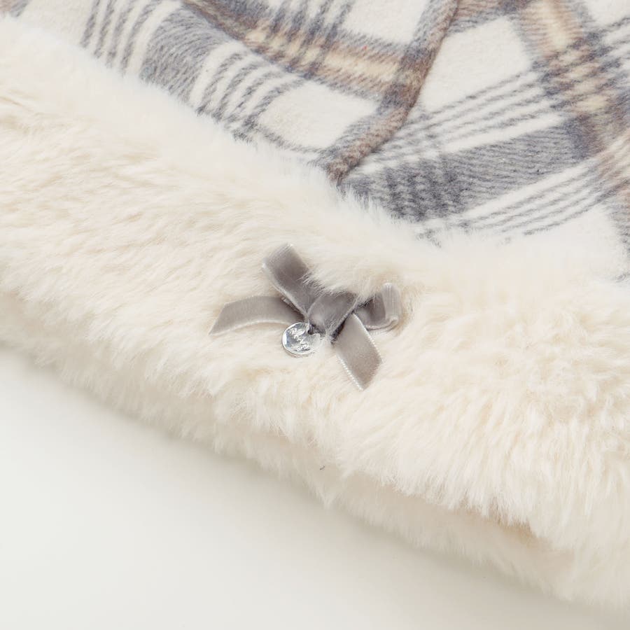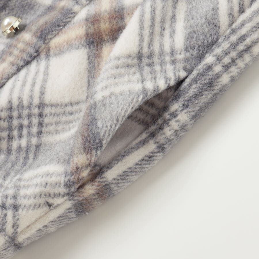 身生地には落ち着いたチェックを使用してシーズンムードをプラス。