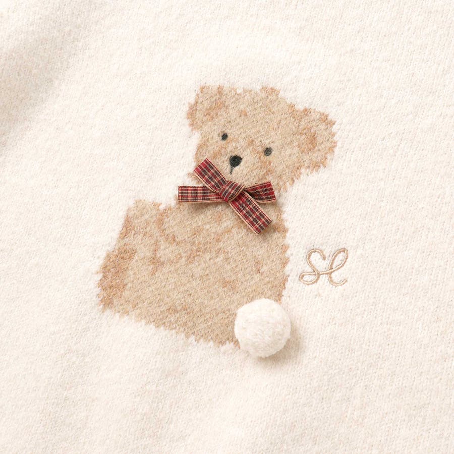 オフホワイト:リボンとボンボンがカワイイクマさん
