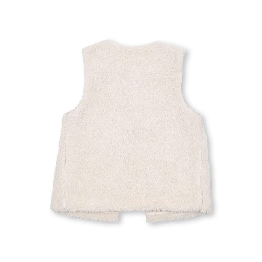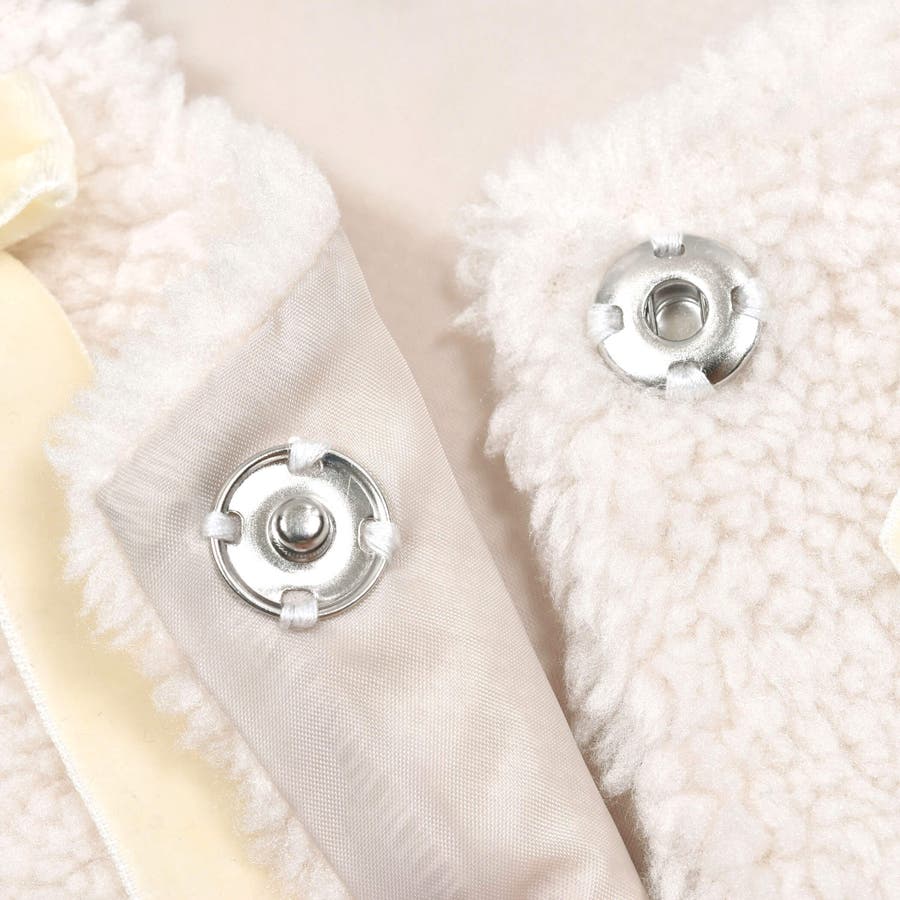 ベスト型のアウターは両手を動かしやすくて、スナップボタンで留めやすいのもうれしい!