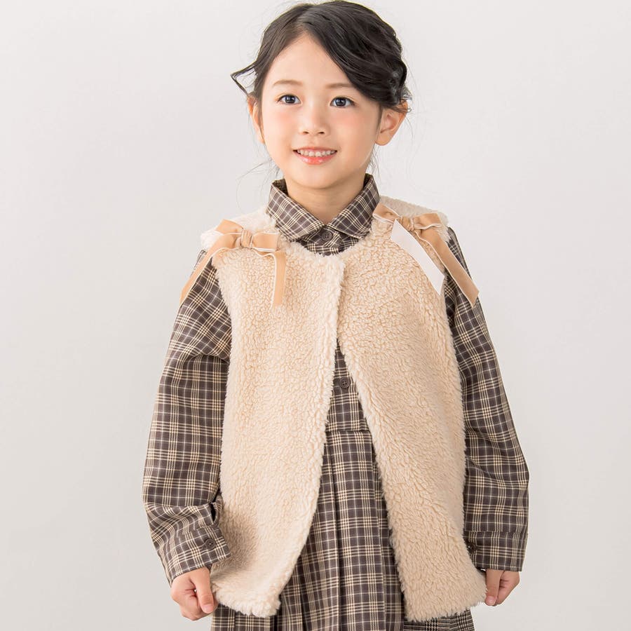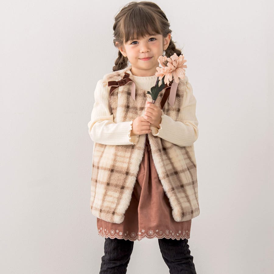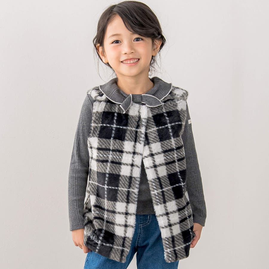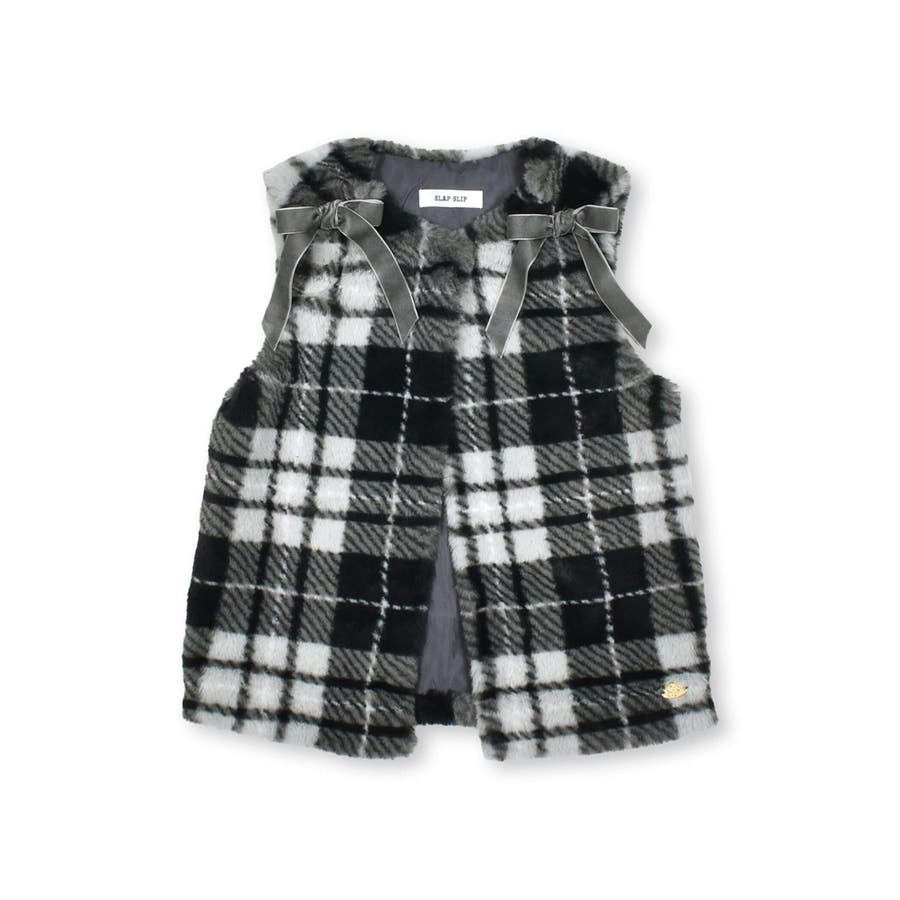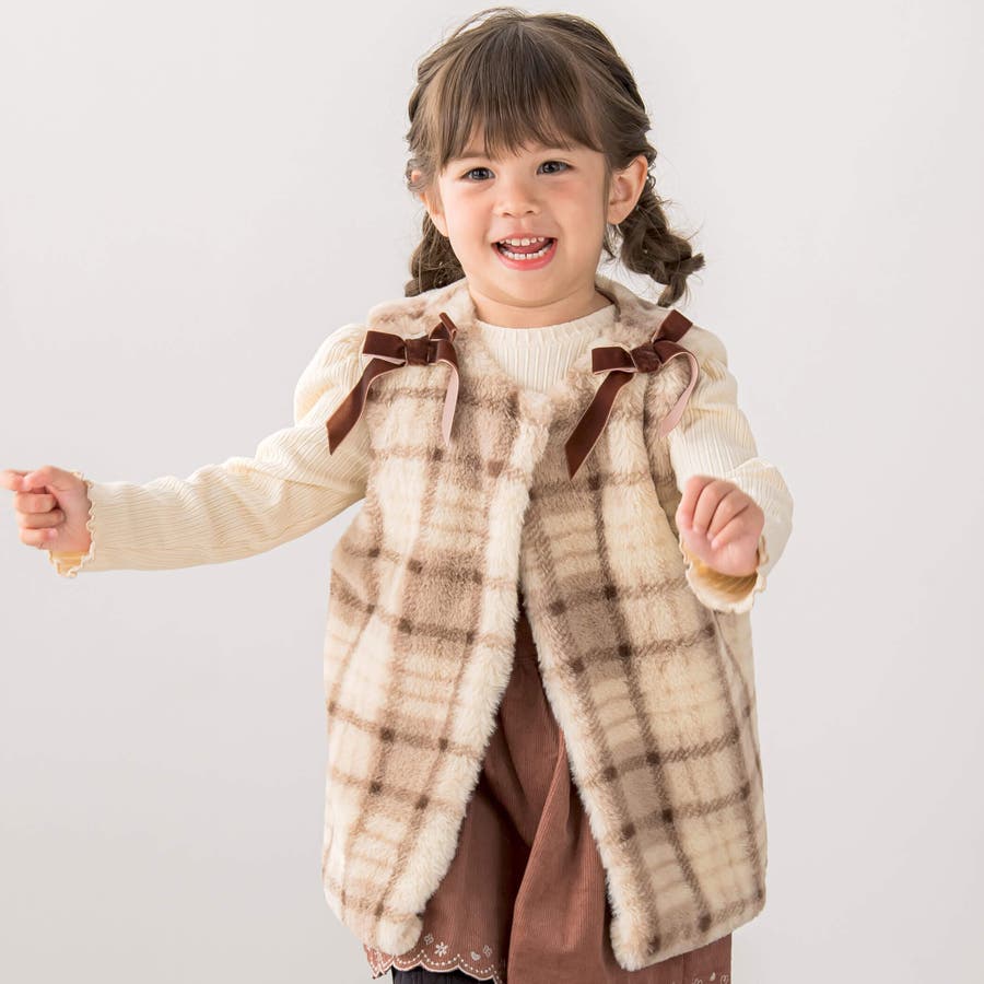 肩リボンチェック柄ファーボアベスト(80~130cm)