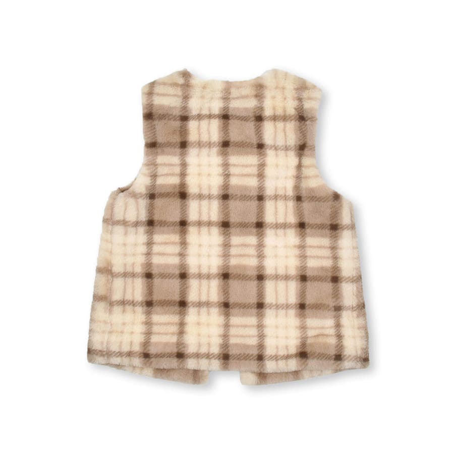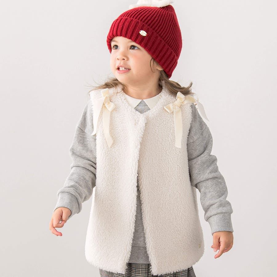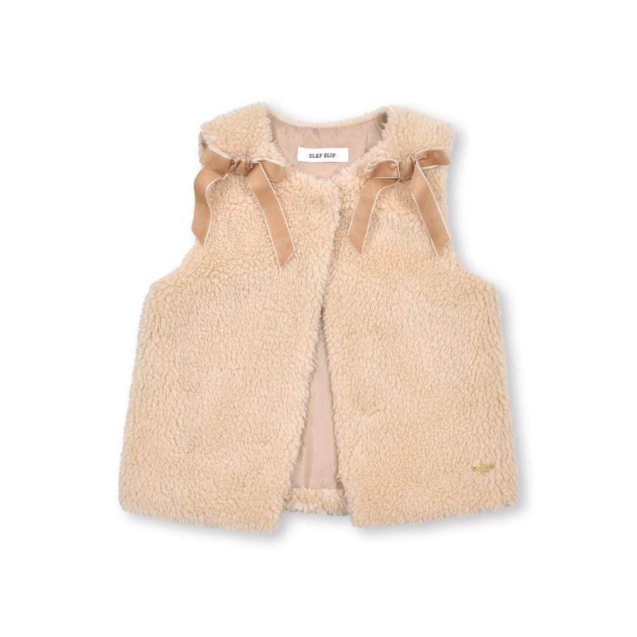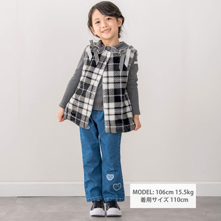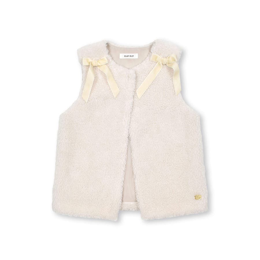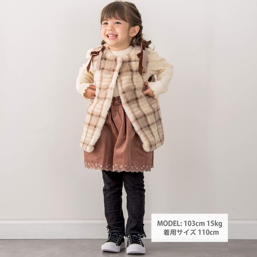 肩リボンチェック柄ファーボアベスト(80~130cm)
