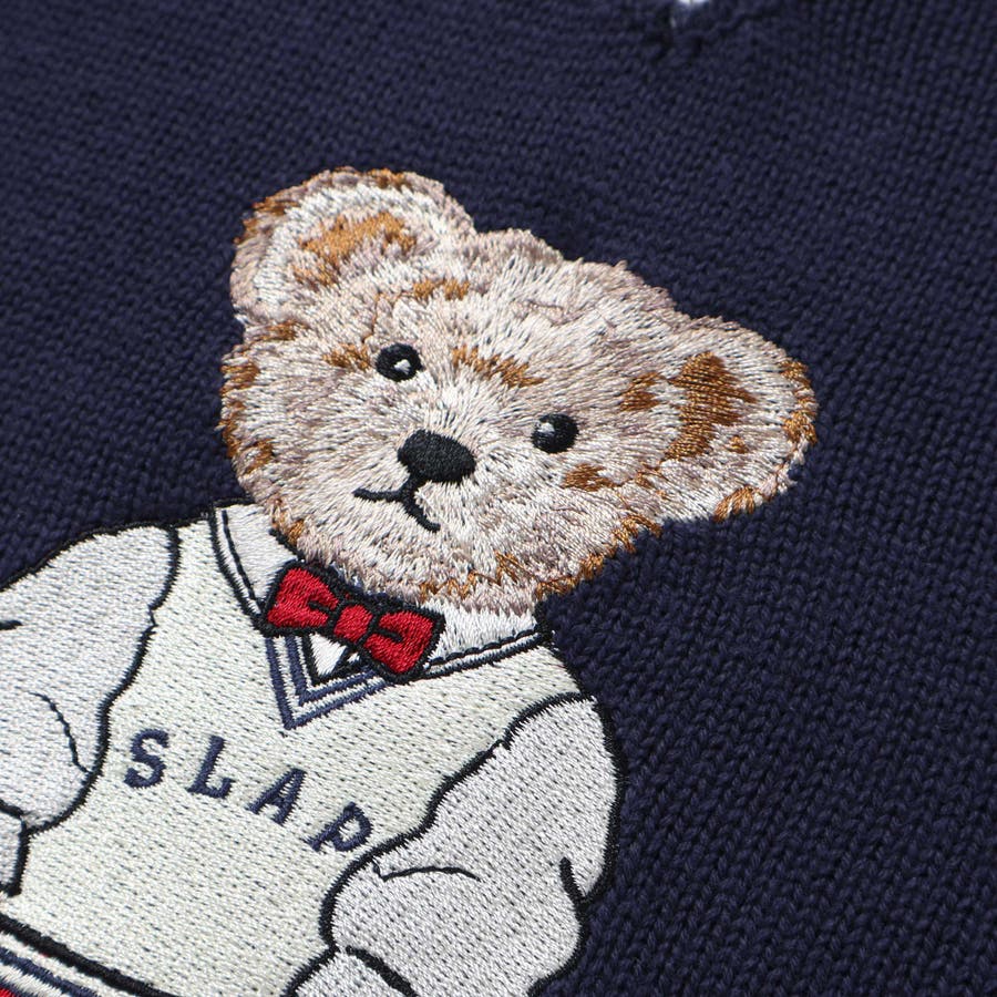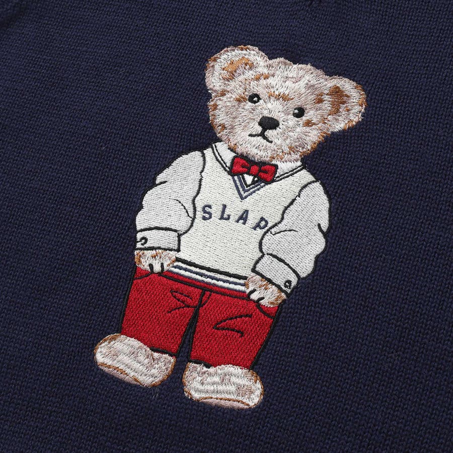 フロントにほどこしたクマさんもベストとシャツを着ておめかししているのがかわいいアイテムです。