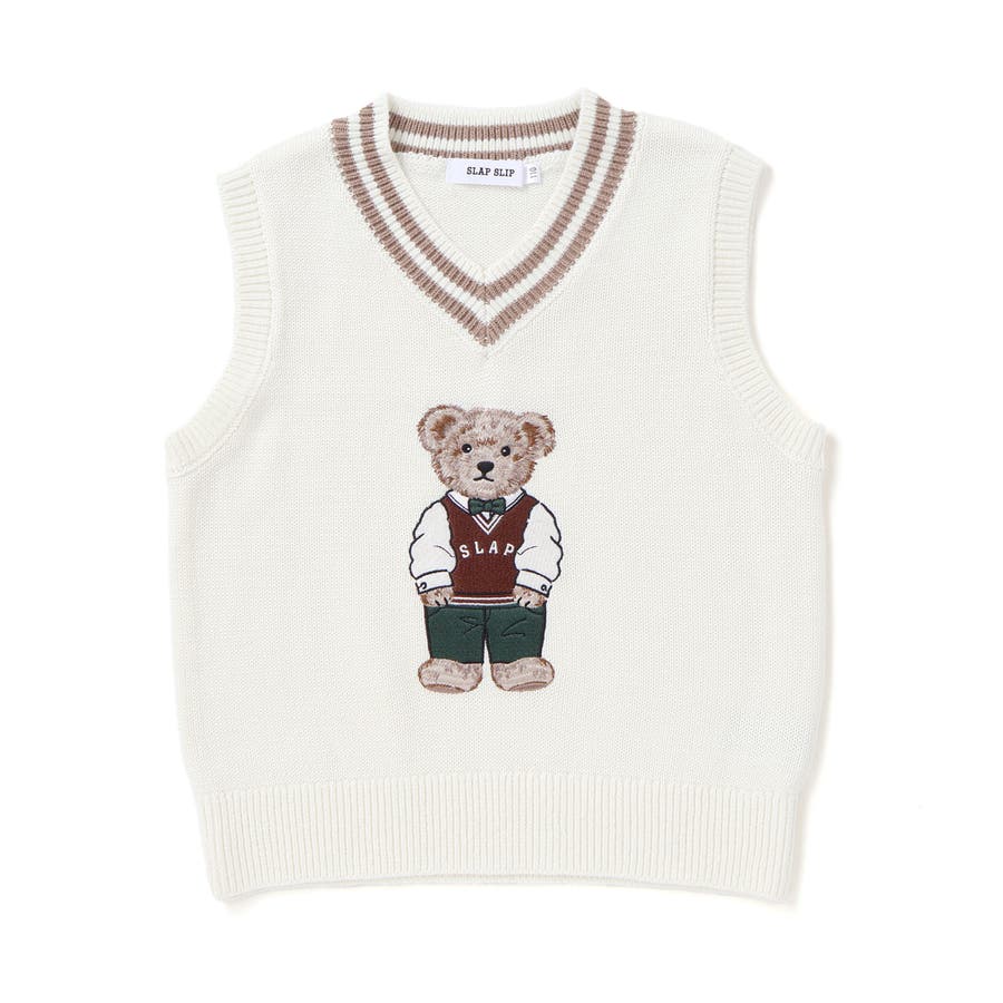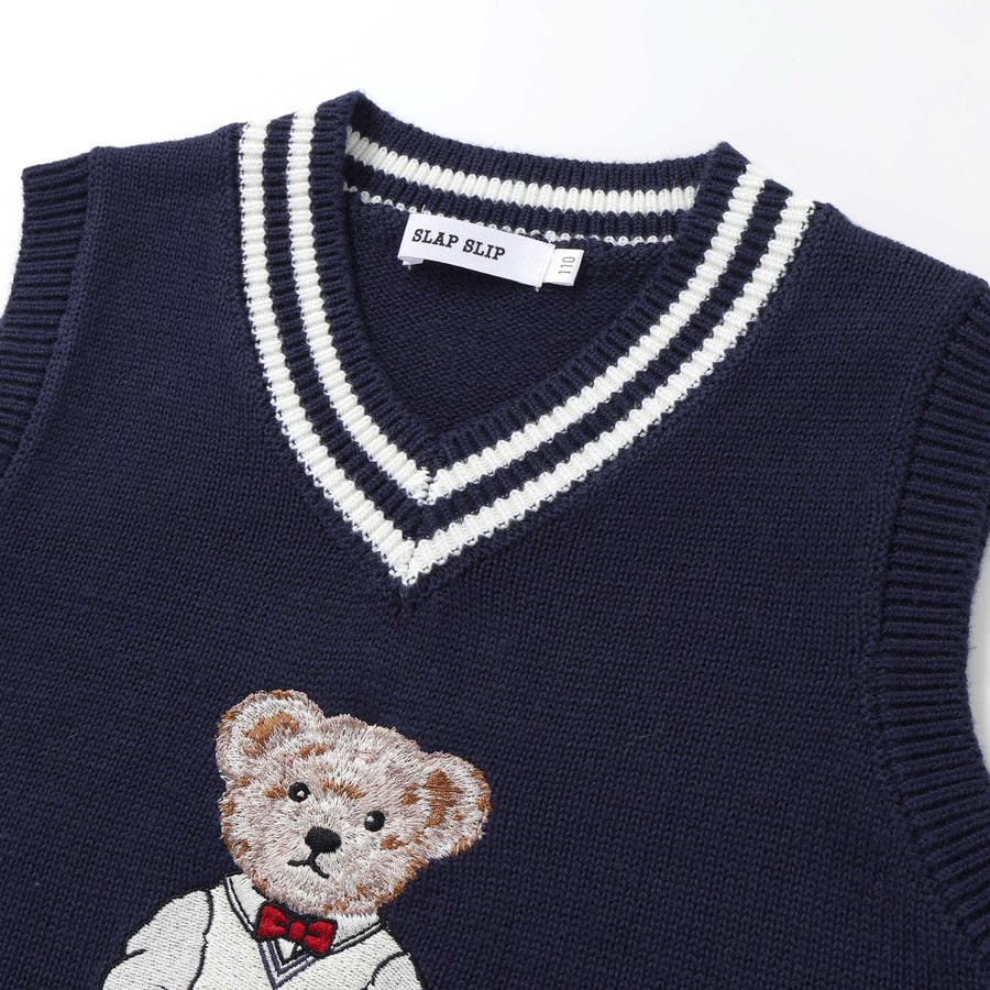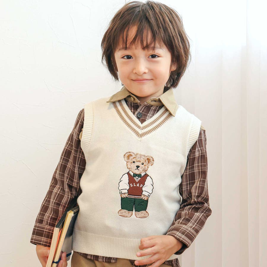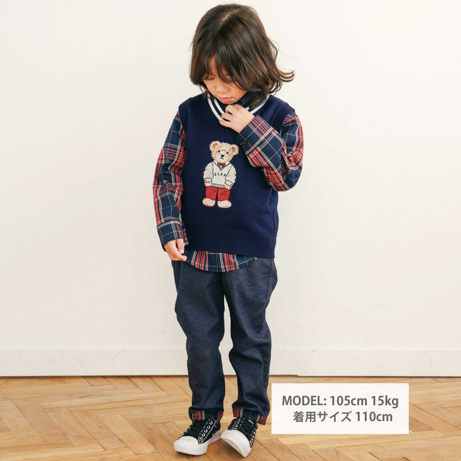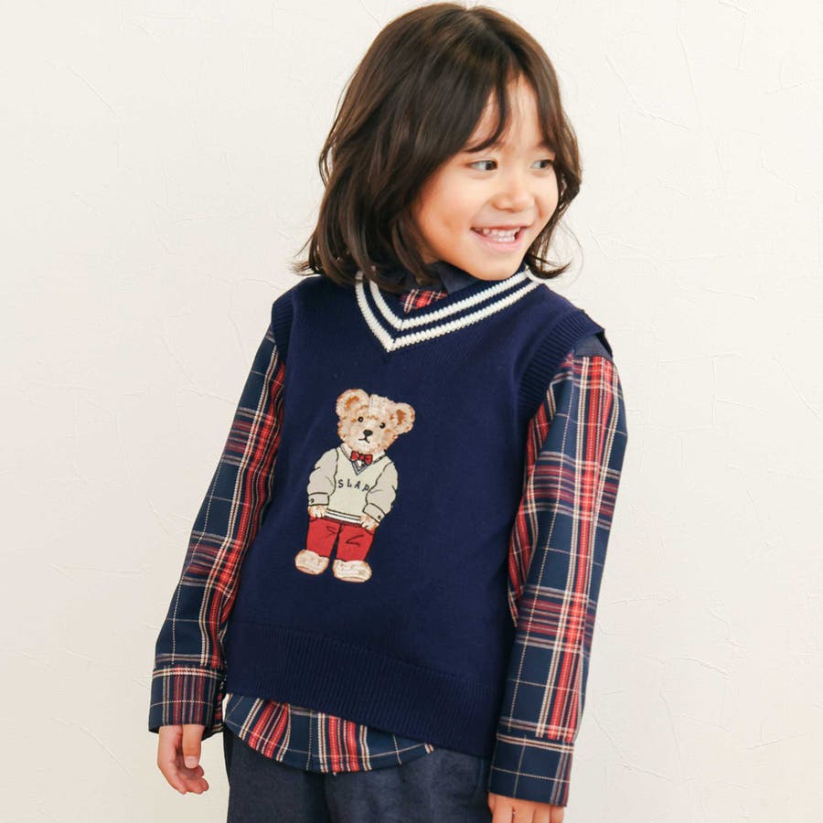 クマ刺しゅうラインリブニットベスト(80~130cm)